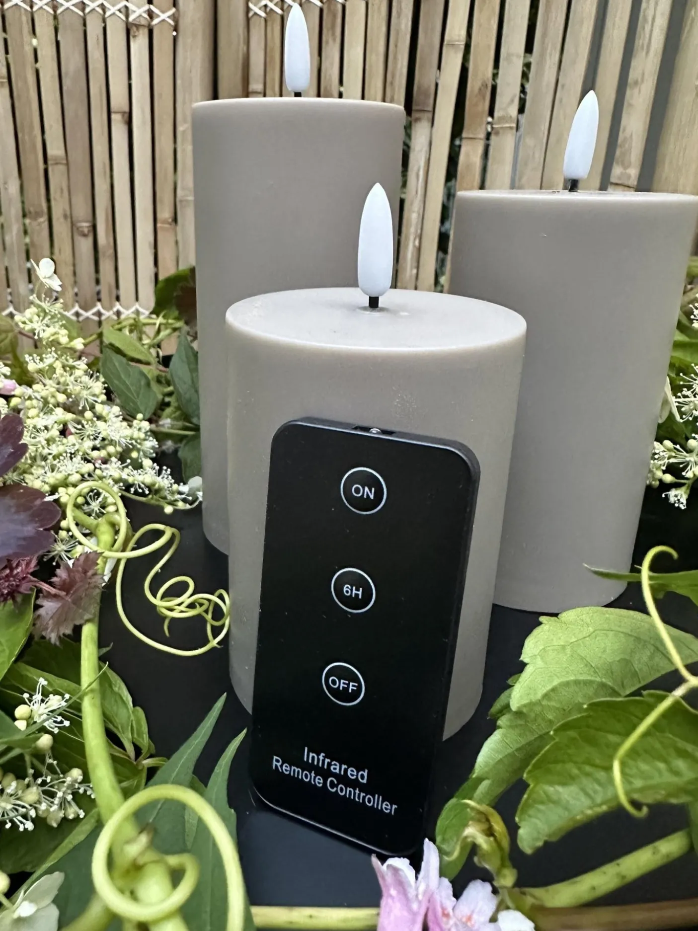 Sæt med 3 stk bloklys i sand og fjernbetjening m. Timerfunktion.