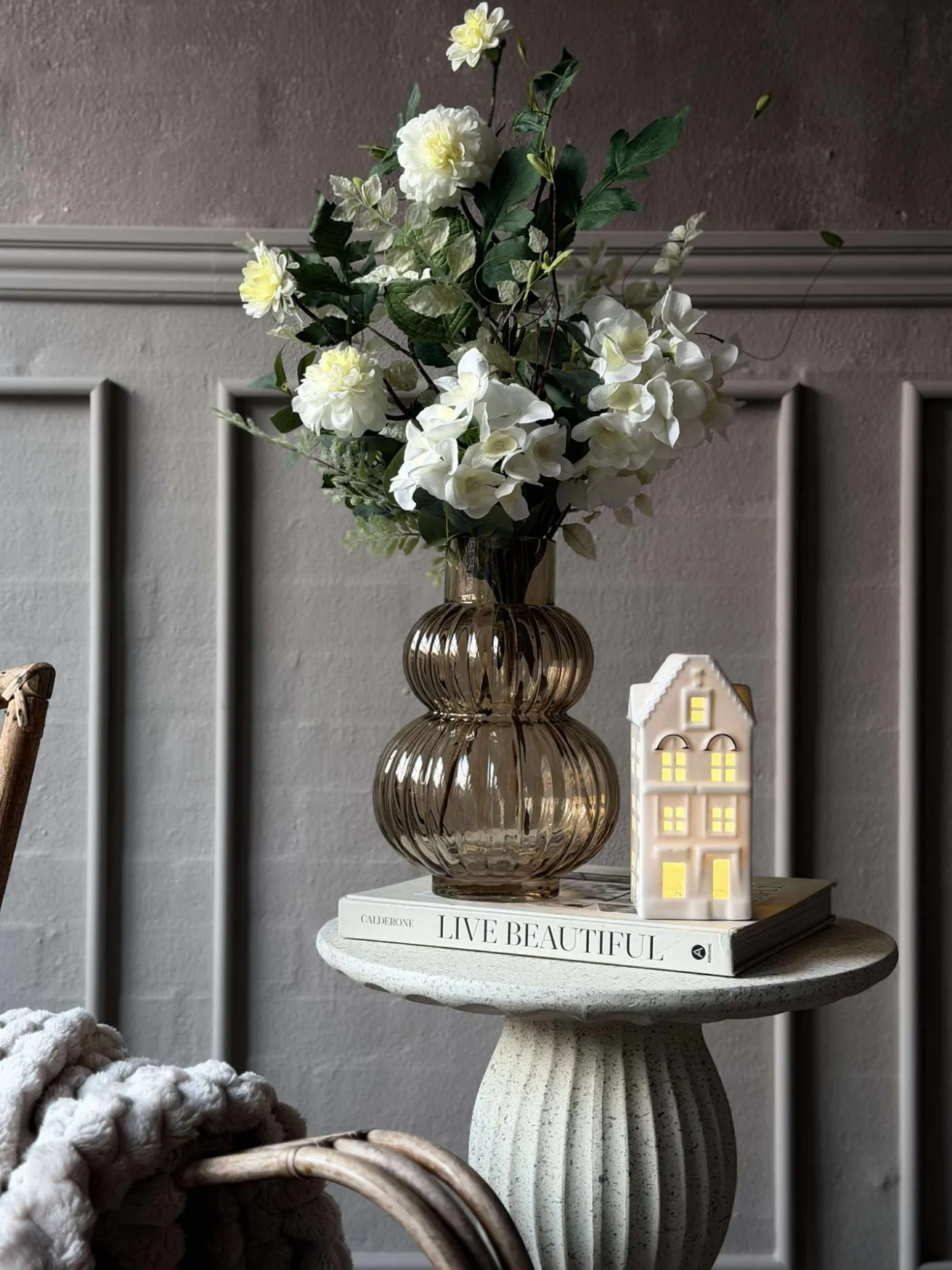 Charmerende lyshus i porcelæn med led lys.