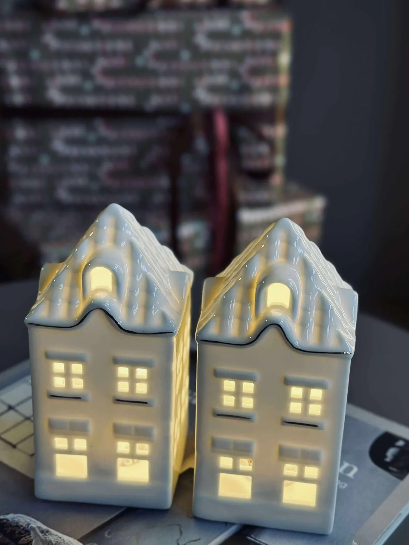 Charmerende lyshus i keramik med led lys.