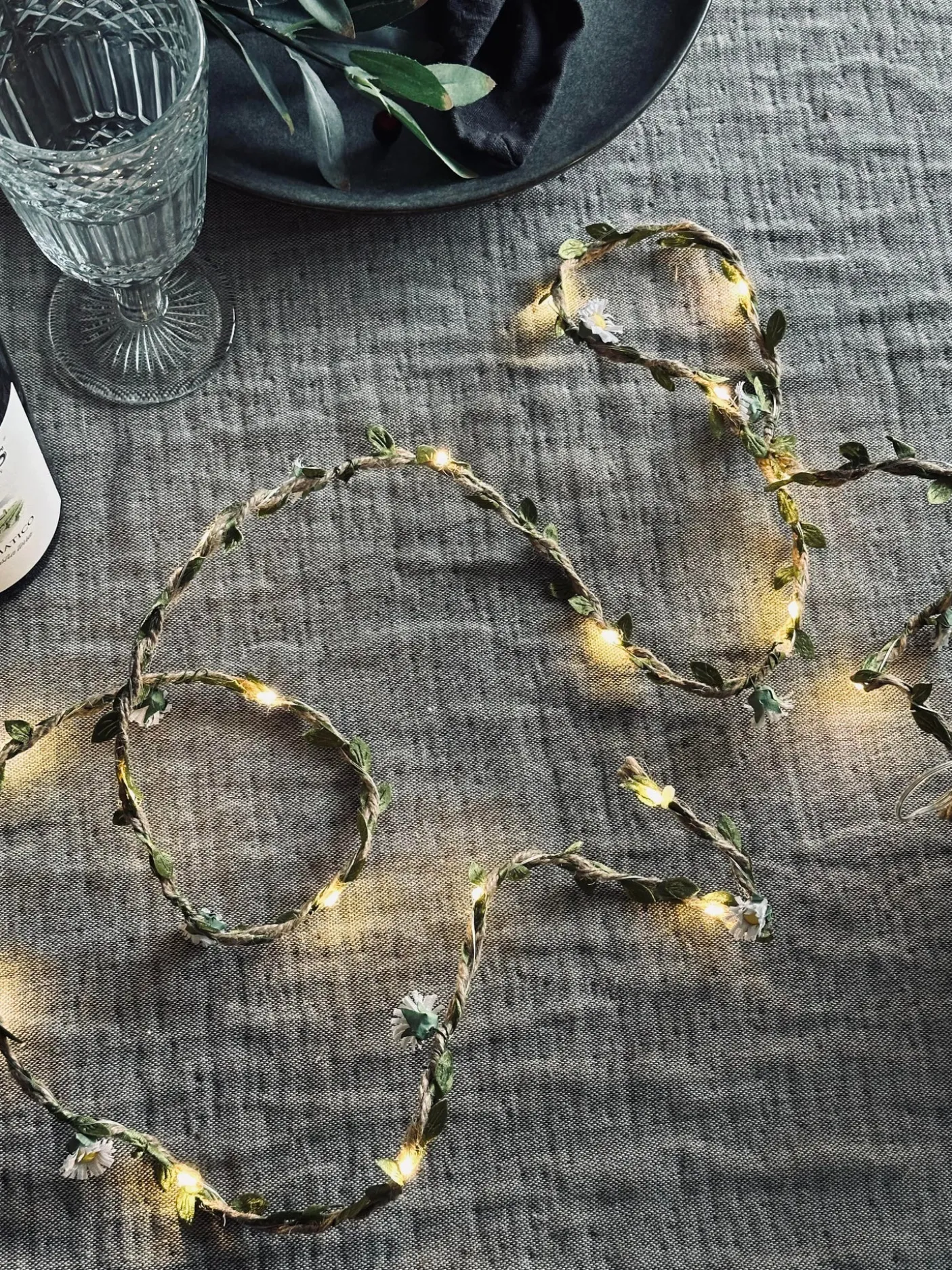 Super fin og dekorativ lyskæde med eucalyptus blade.