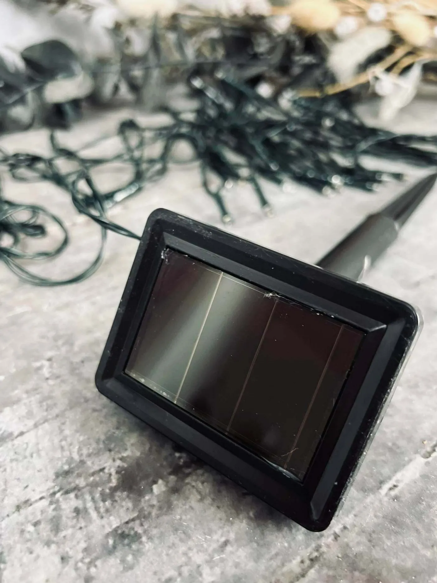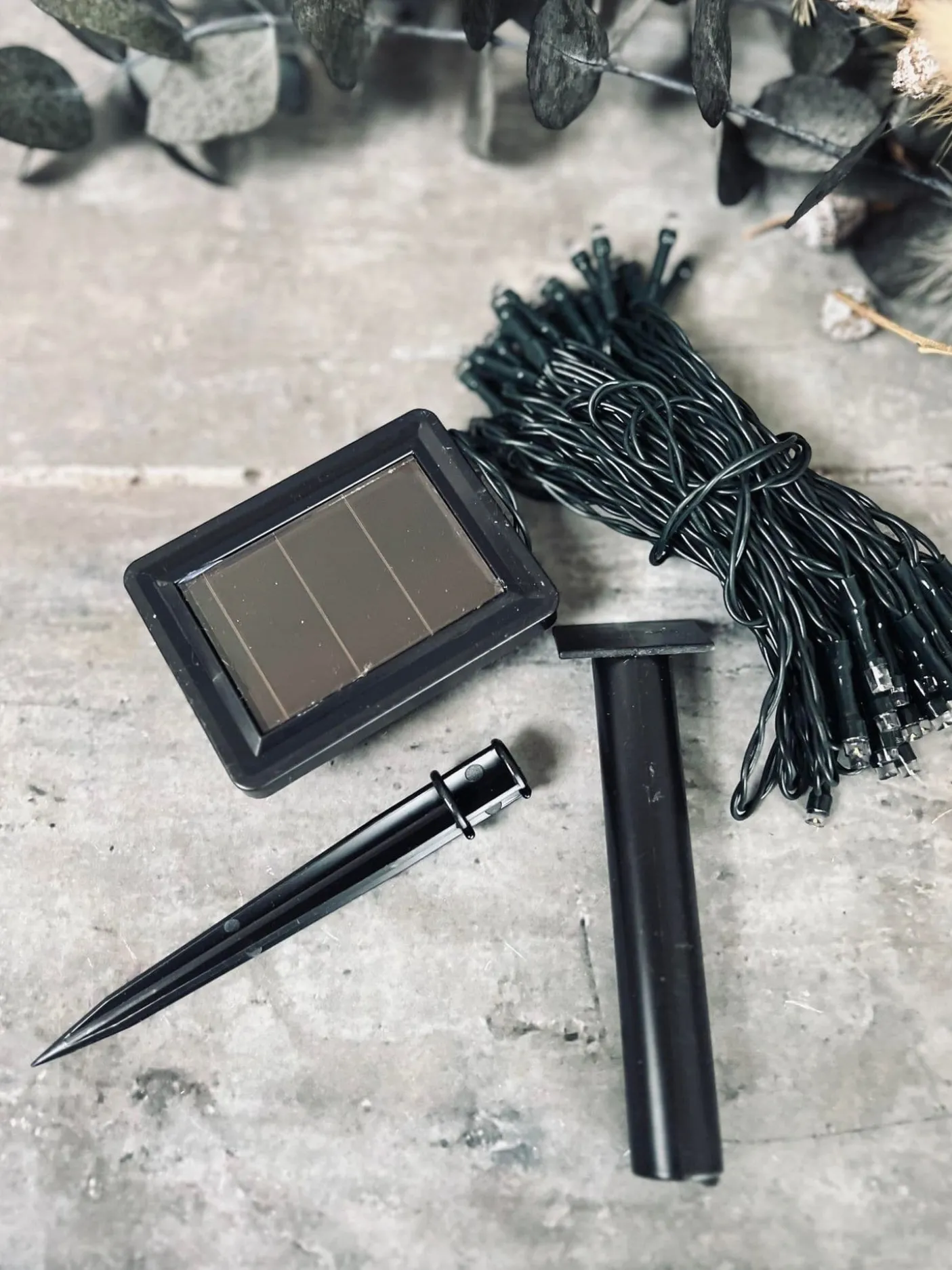 Lyskæden skal være tændt for at den kan oplade af solen.