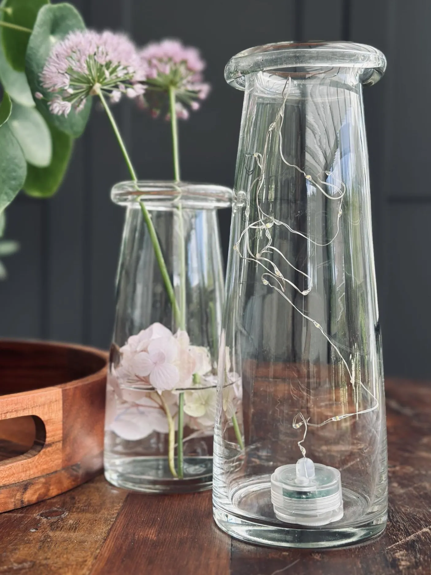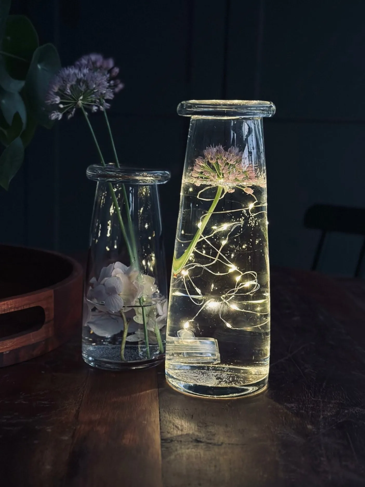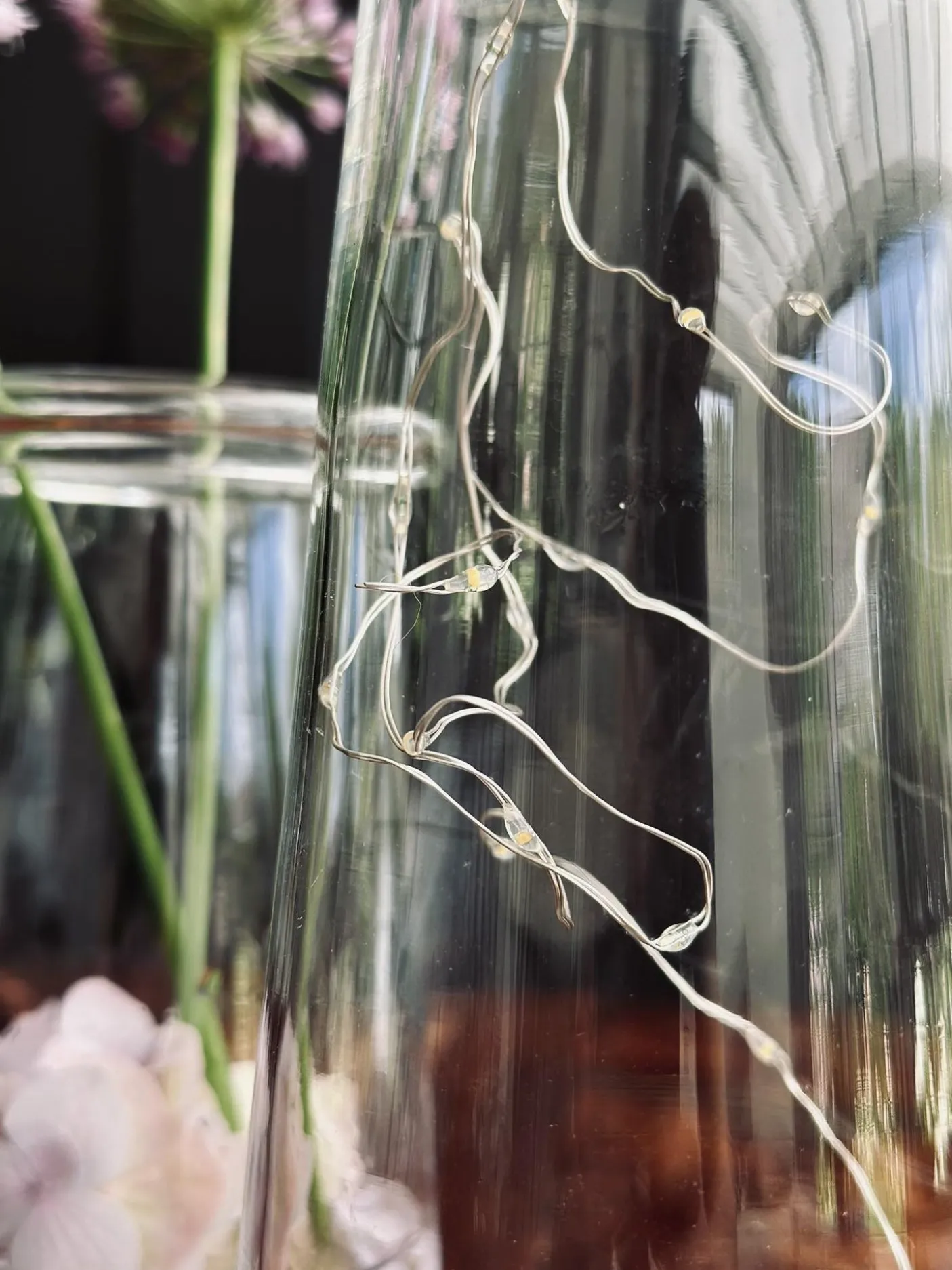 Lyskæden er perfekt til bordpynt hvor den placeres i små blomstervaser.