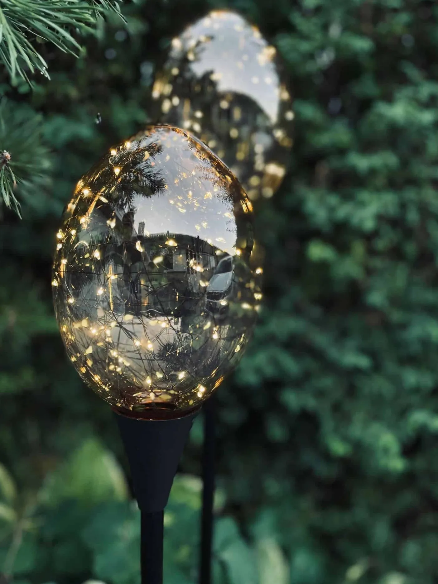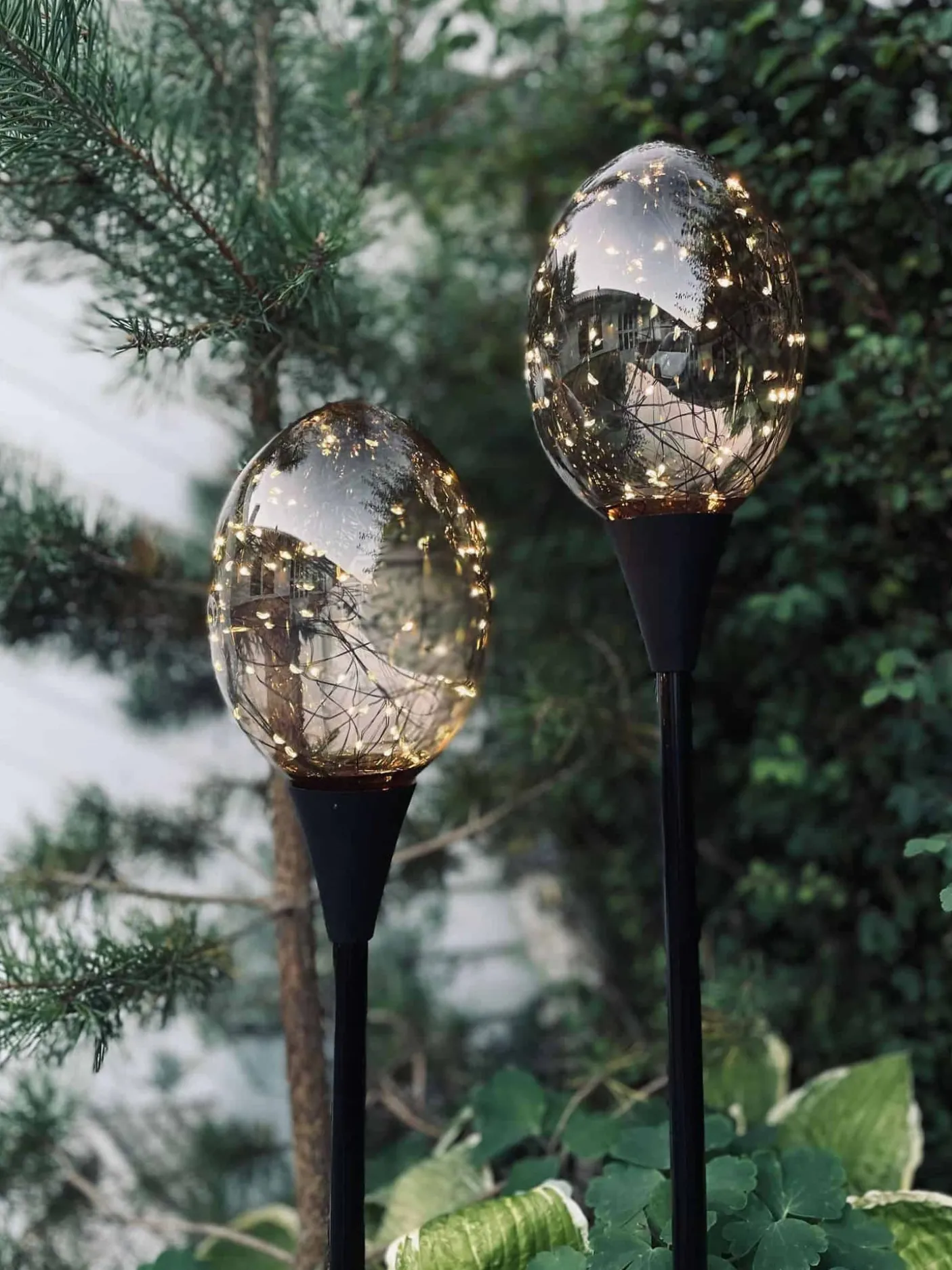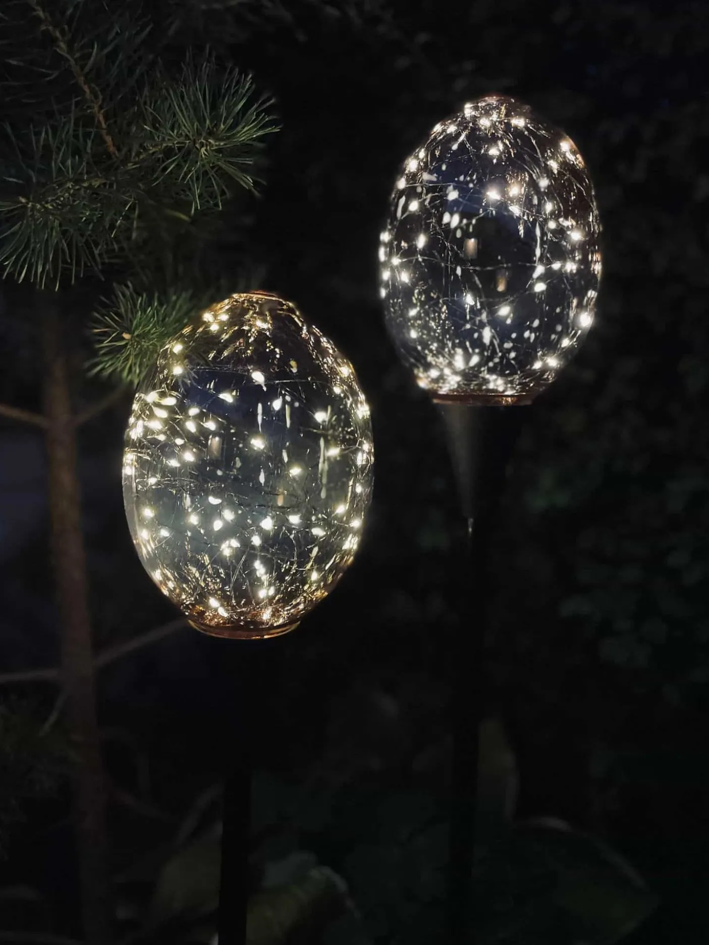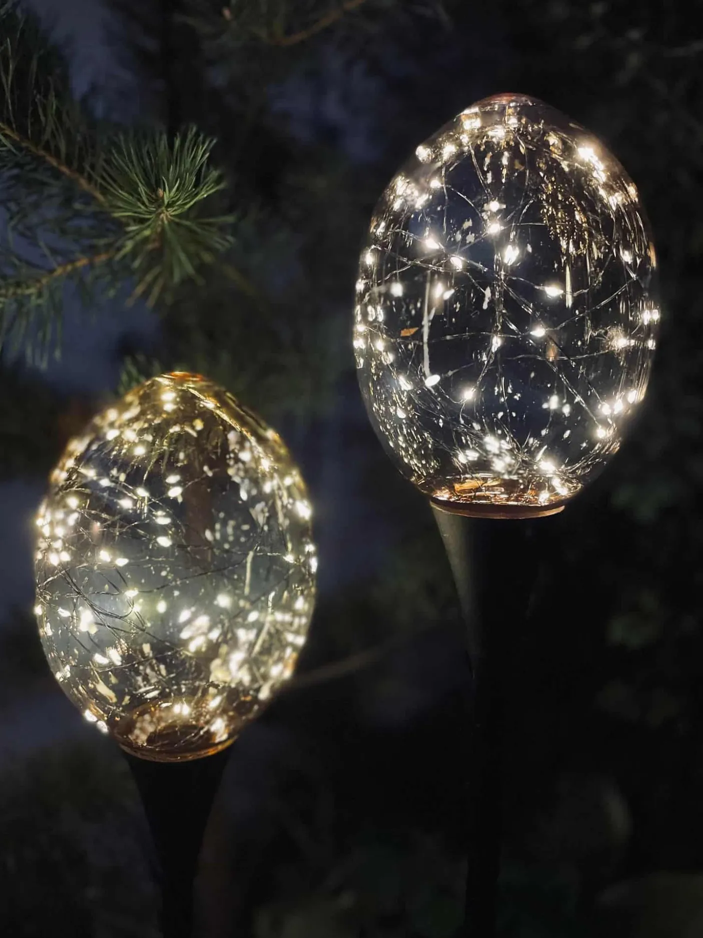 Sæt af 2 flotte lyskugler på sort spyd.