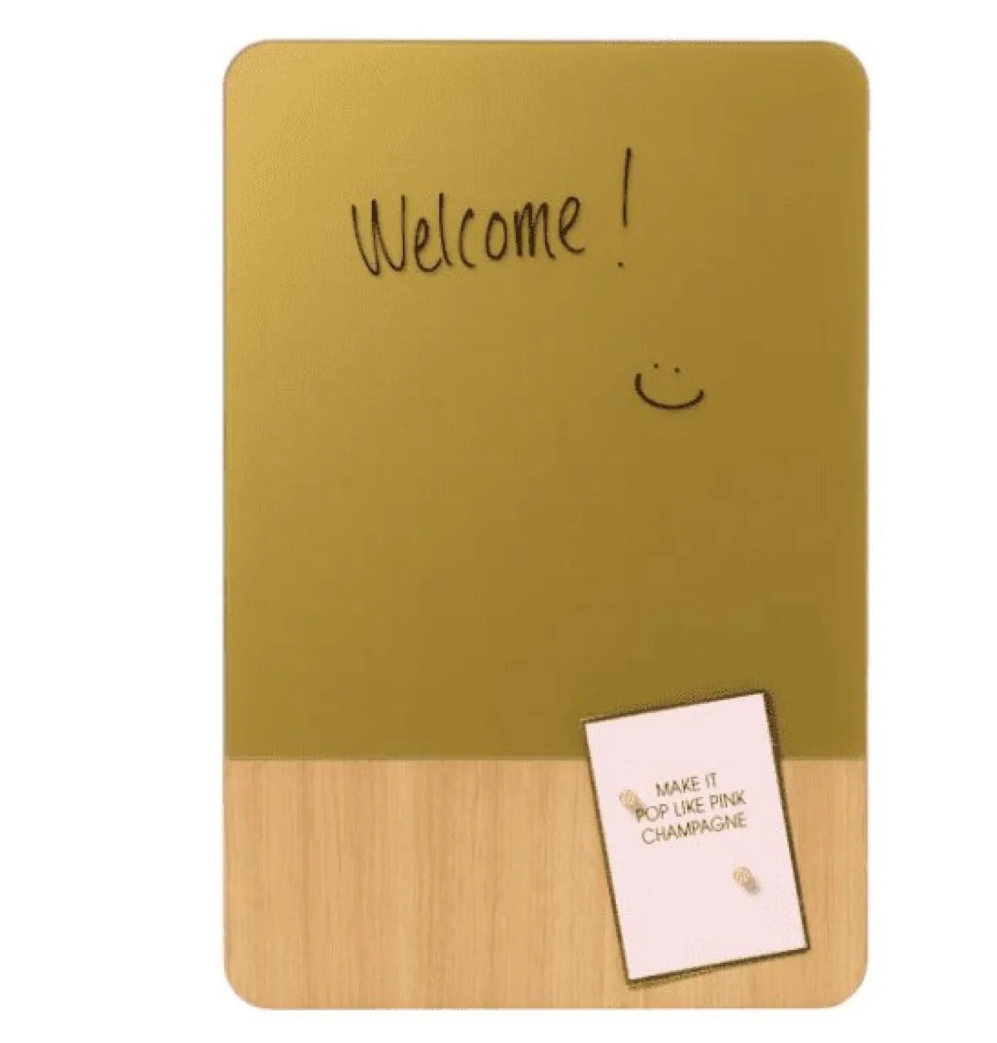 Magnetisk tavle 60 x 80 cm. Mat glas i guld og egefiner.