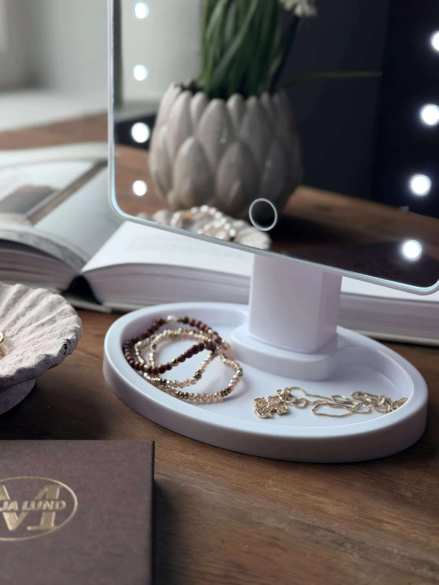 - Fod med lille bakke til f.eks. smykker.