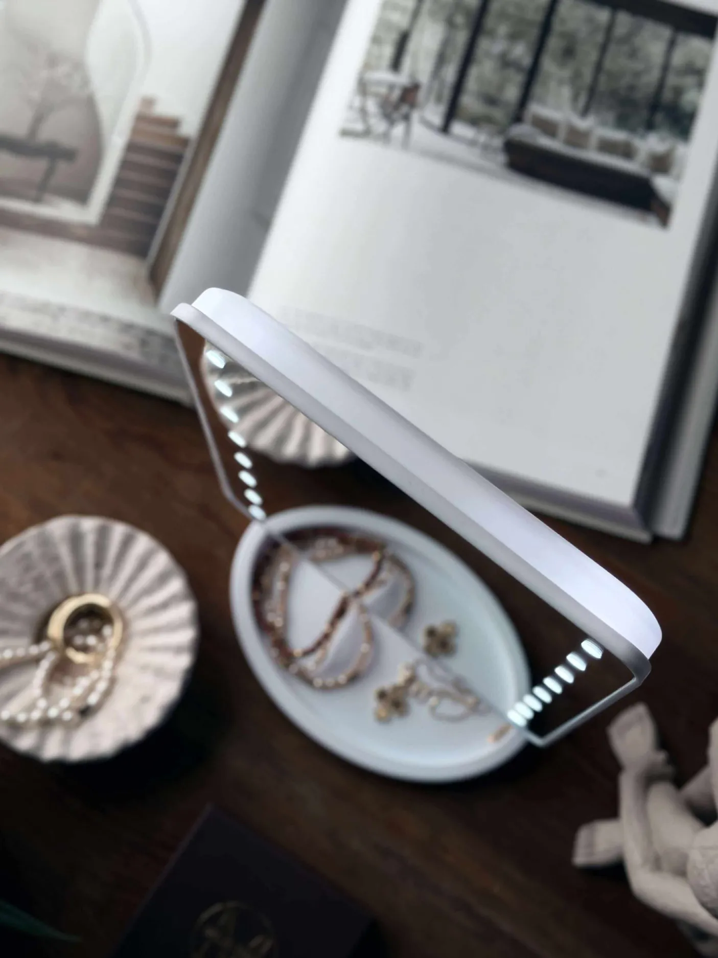 Sødt lille makeup spejl med lys.