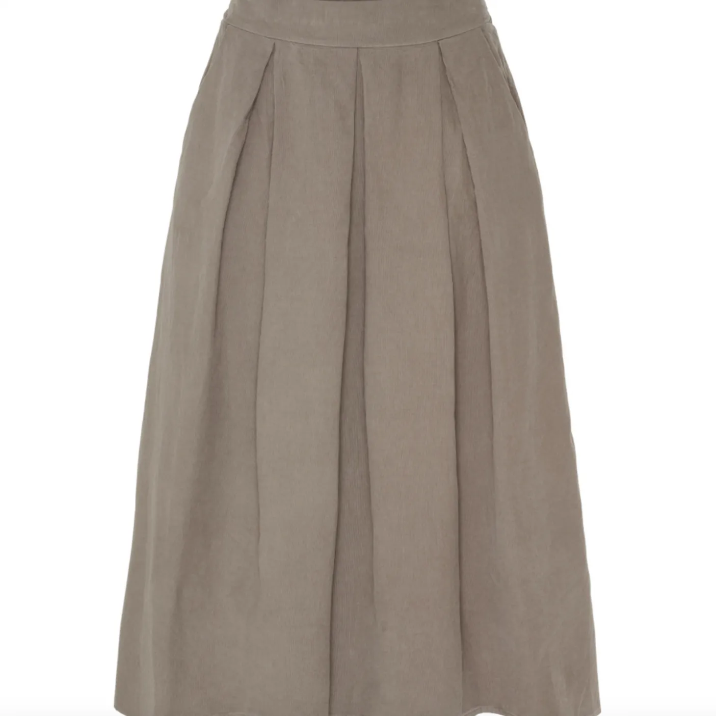 Nederdel Ciela fango er en smart midilengde-nederdel, der går ca. til midt på skinnebenet. Modellen har elastik i taljen for en enkel pasform. Materiale: 100% bomuld, som giver et roligt tekstilt udtryk. Farvevariant: fango.