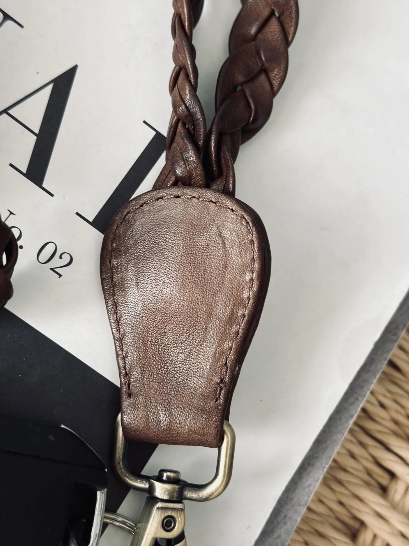 Keyhanger i mørkebrun læder flet.