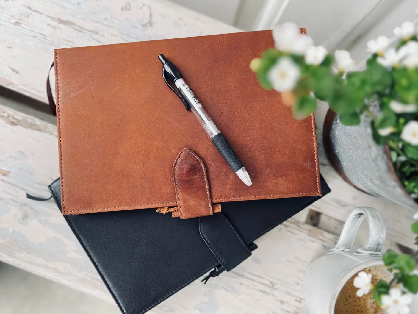 Dette læder-omslag kan du bruge i mange år, og du kan bruge den som notesbog eller kalender .