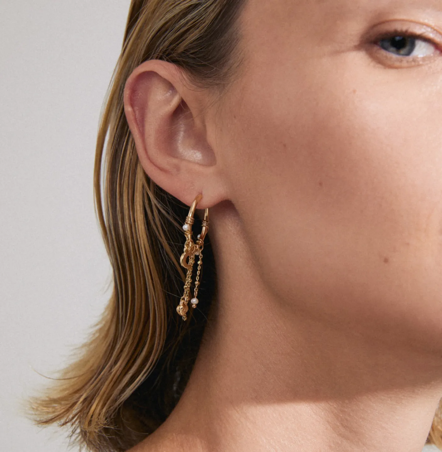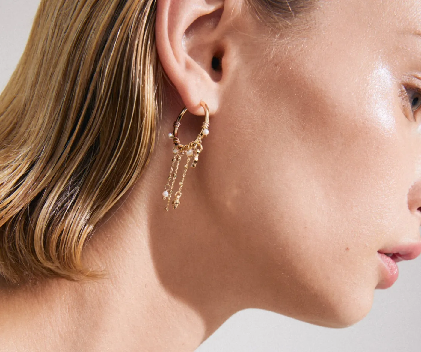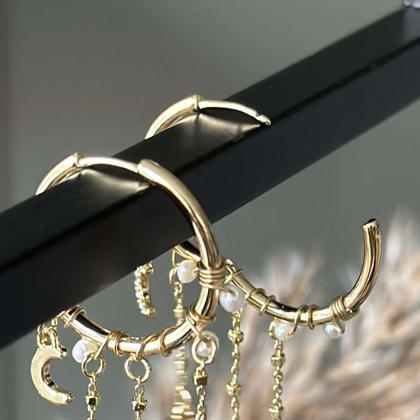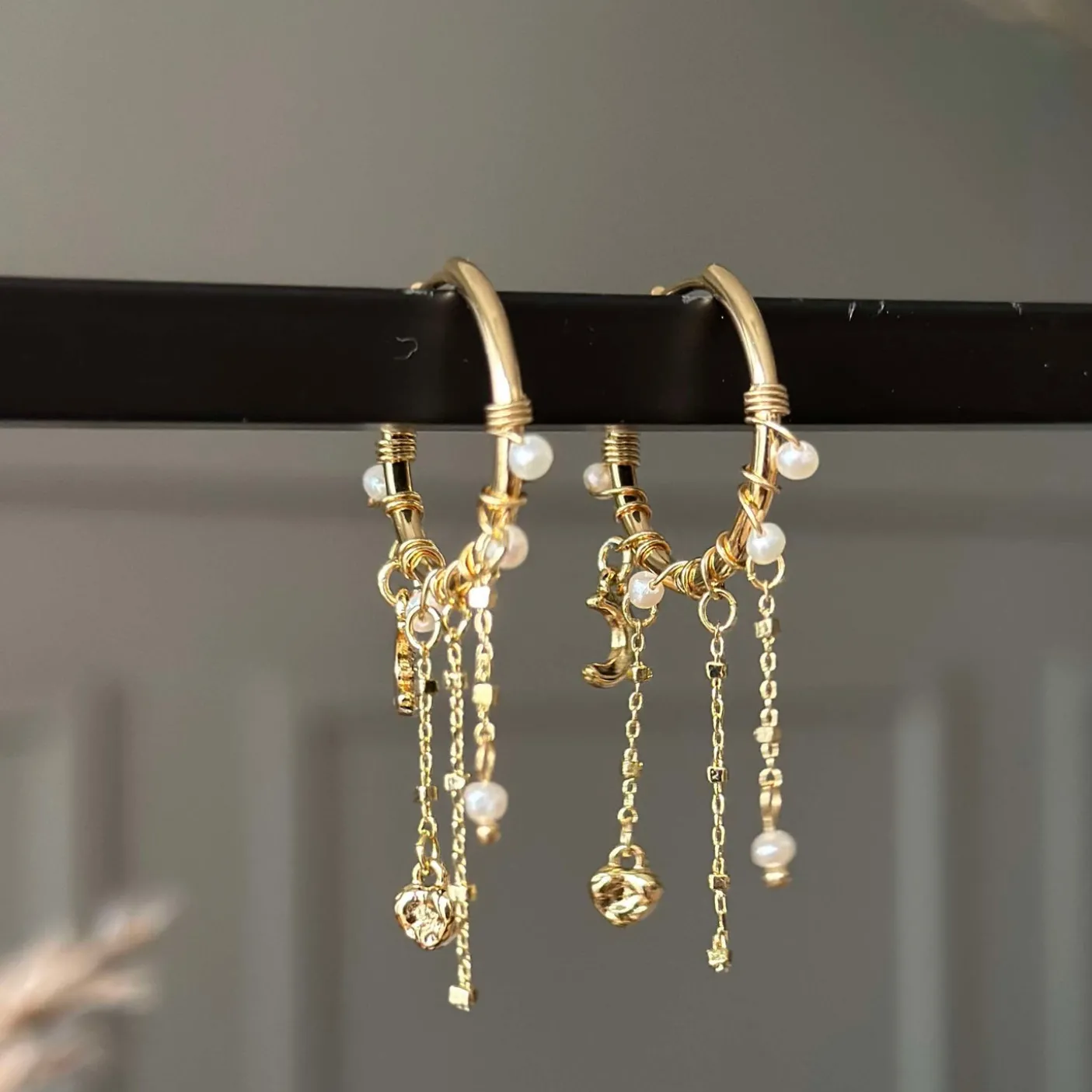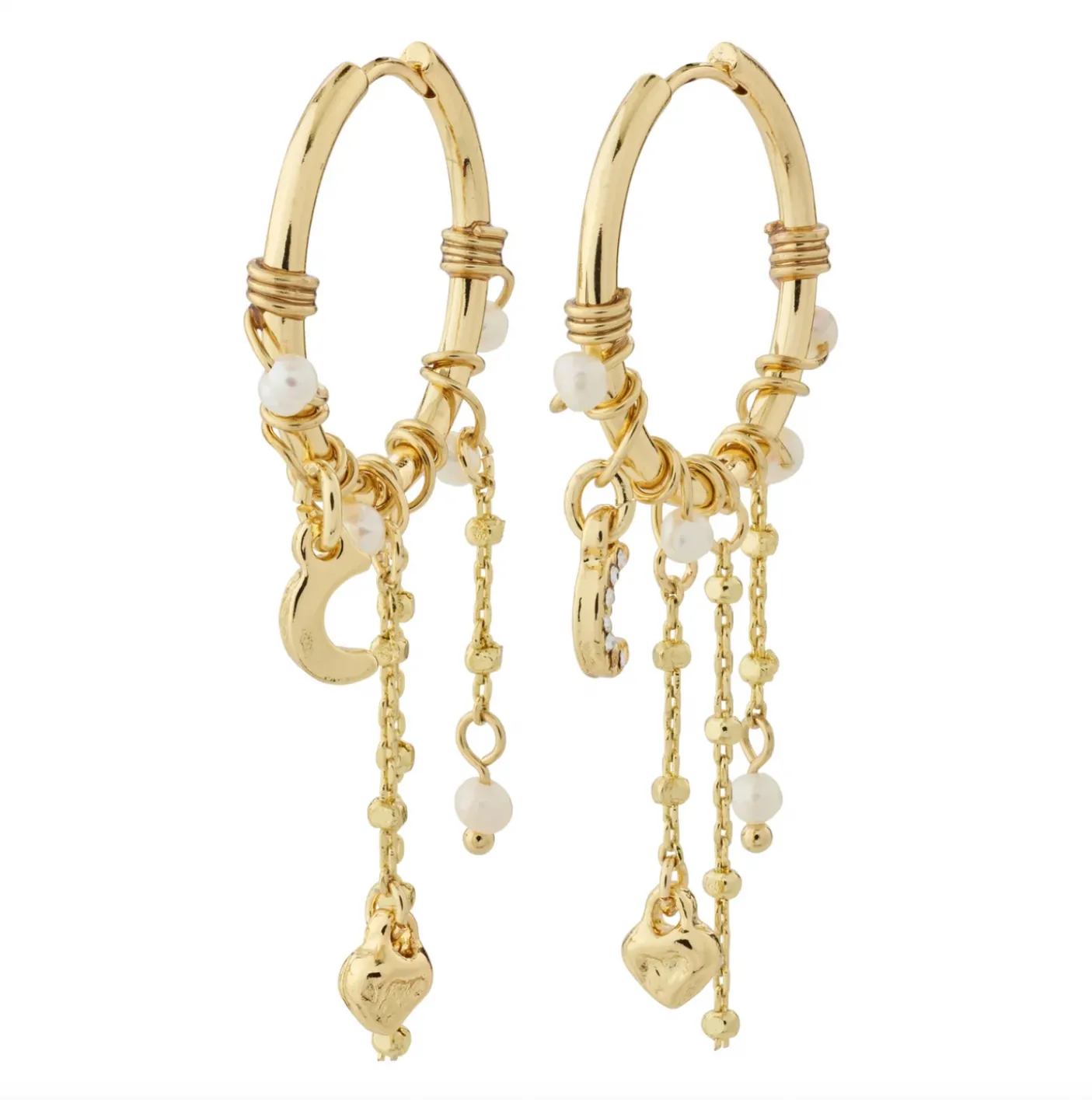 Smukke hoops med vædhæng af ferskvandsperler og Preciosa krystaller.