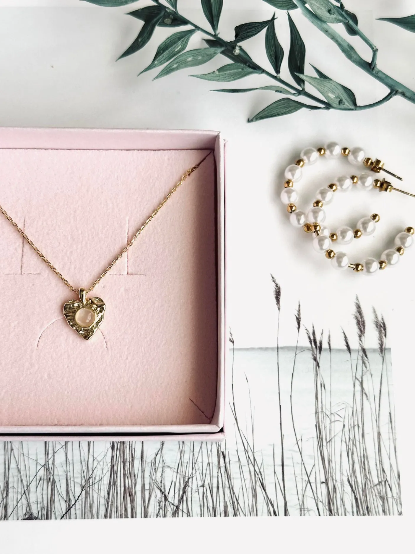De er udført i rustfrit stål, der er guldbelagt. De bitte små perler er også udført i rustfrit stål og bilag med guld. De komplimenterer moden så fint, og kan faktisk gå til alle outfits.