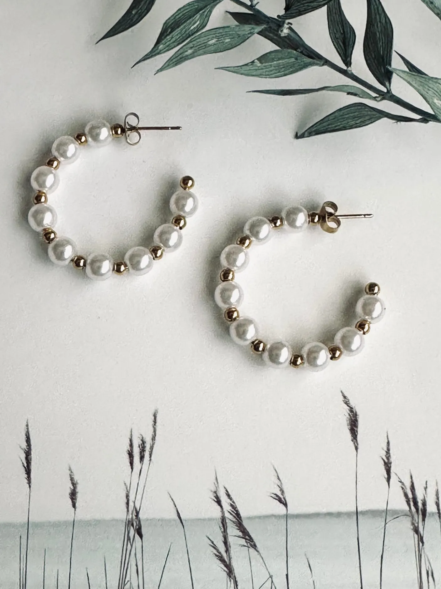 Lette hoop øreringe med faux perler.