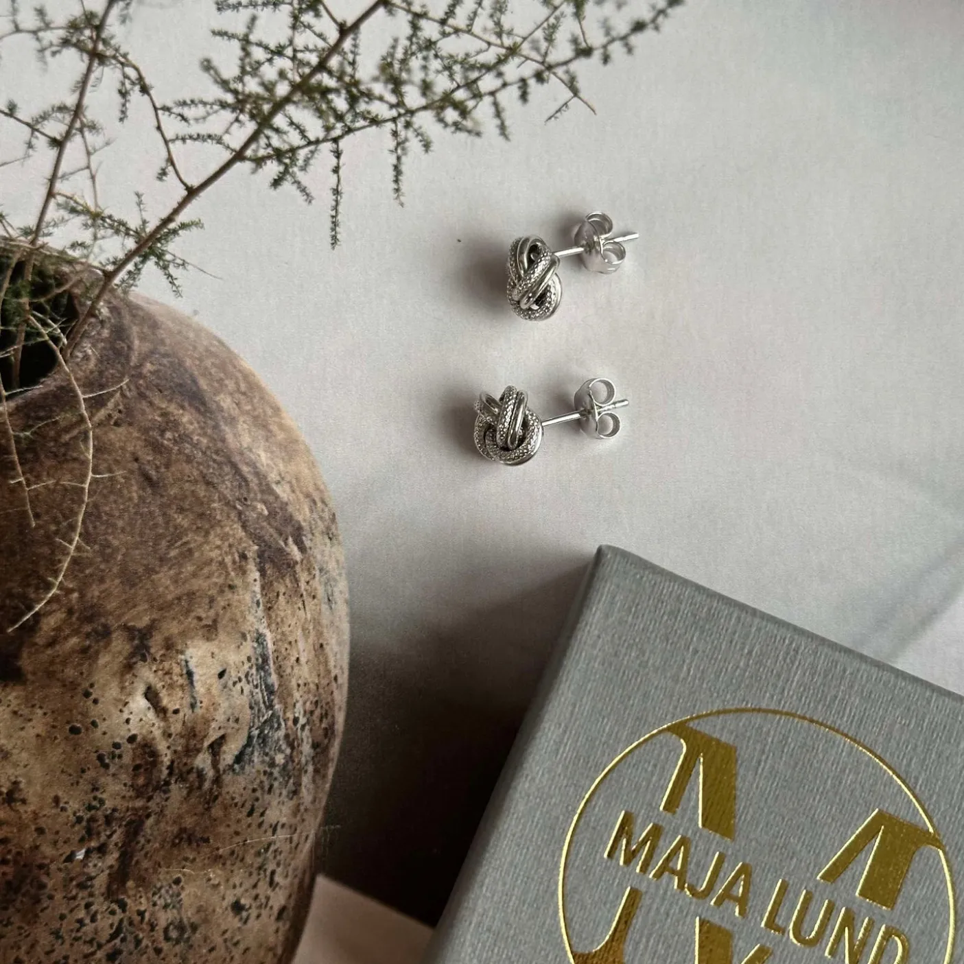 Eksklusive øreringe formet som en knude, fremstillet i solid 925 Sterling Sølv – og belagt med rhodium. FIORINI tilhører vores PREMIUM serie, der er kendetegnet ved høj kvalitet, men stadig til en fair pris. Øreringene er belagt med rhodium, en særlig belægning, der ofte anvendes i smykker for at fremstå med samme look og shine som ægte hvidguld.