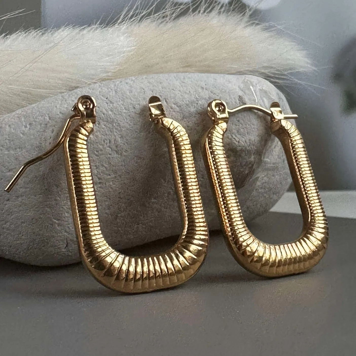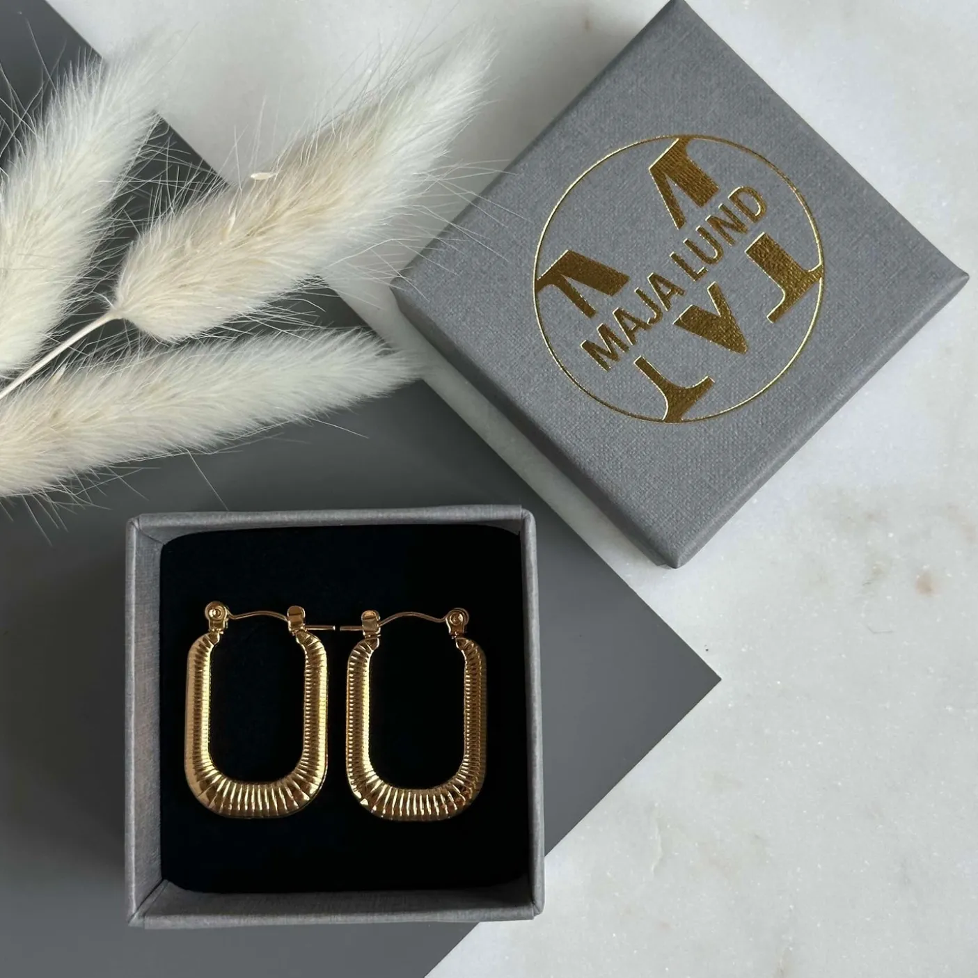 Øreringene er udført i rustfrit stål og forgyldt.
