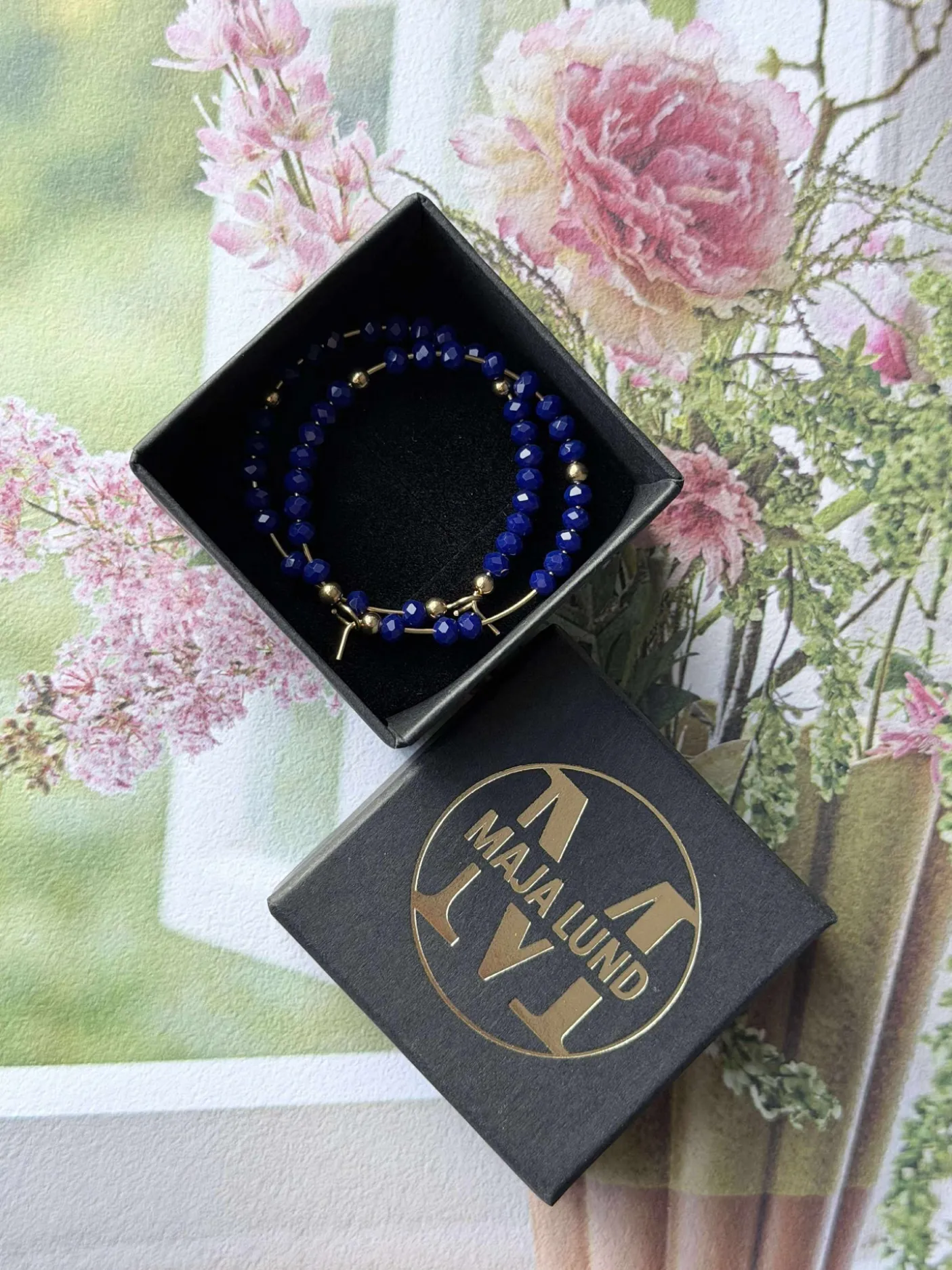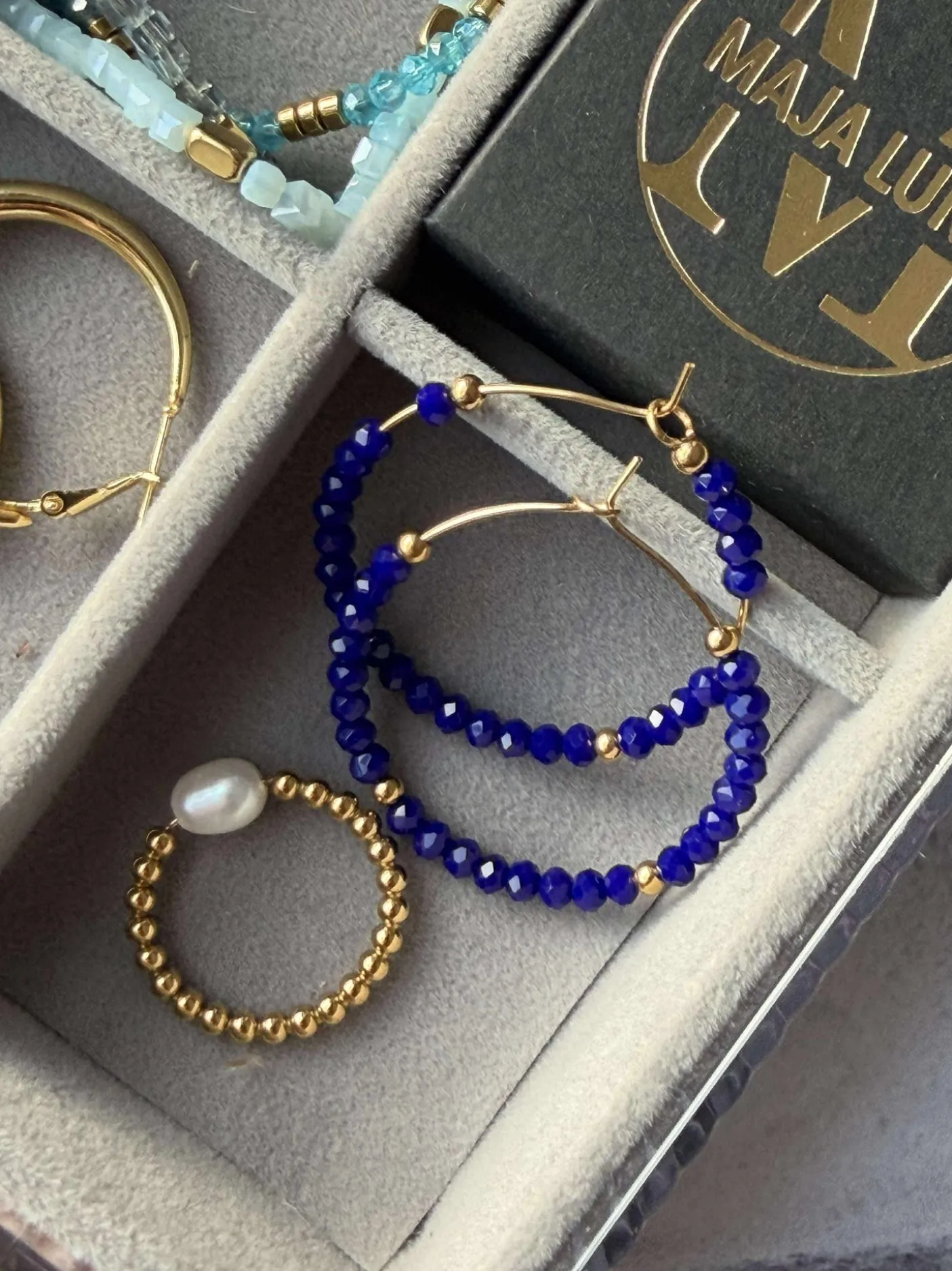 Smukke hoops med kongeblå, facetterede perler.