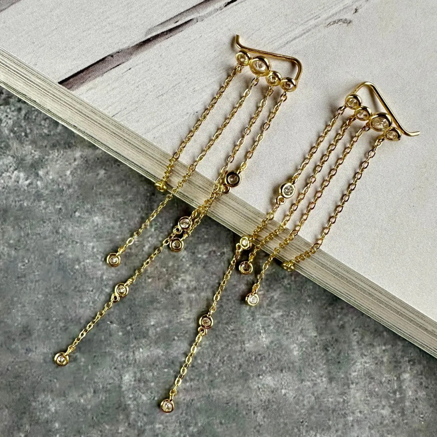 Drop øreringe med kæder – fremstillet i 925 Sterling sølv belagt med 18k guld.
