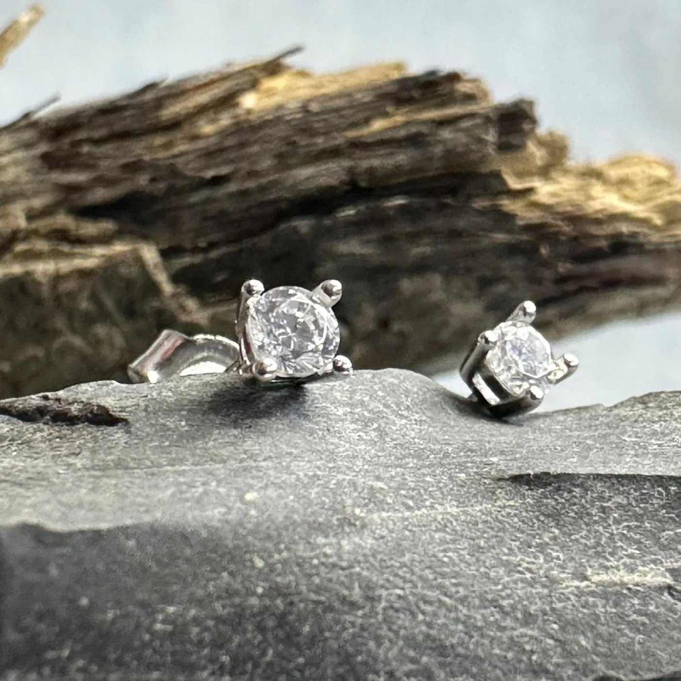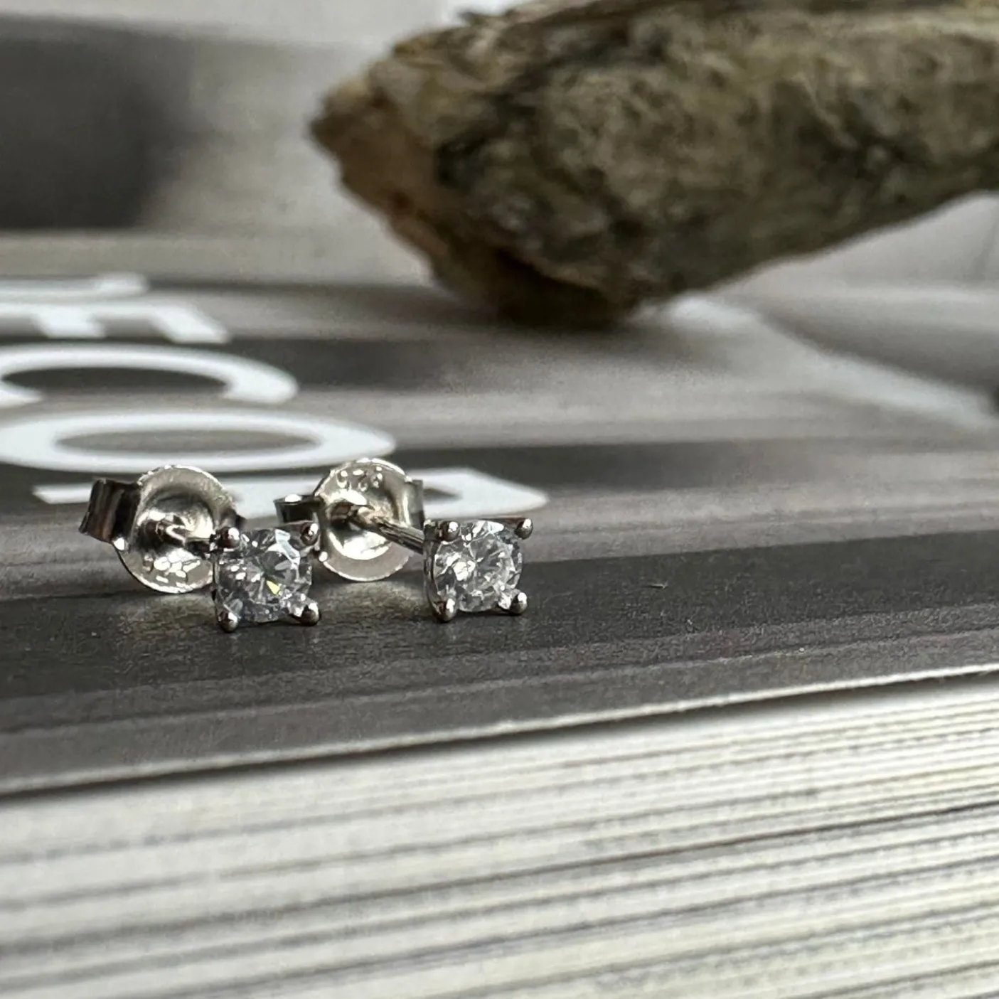 Ørestikker i 925 Sterling sølv, rhodium belagt – sten i CZ Zirkoner.