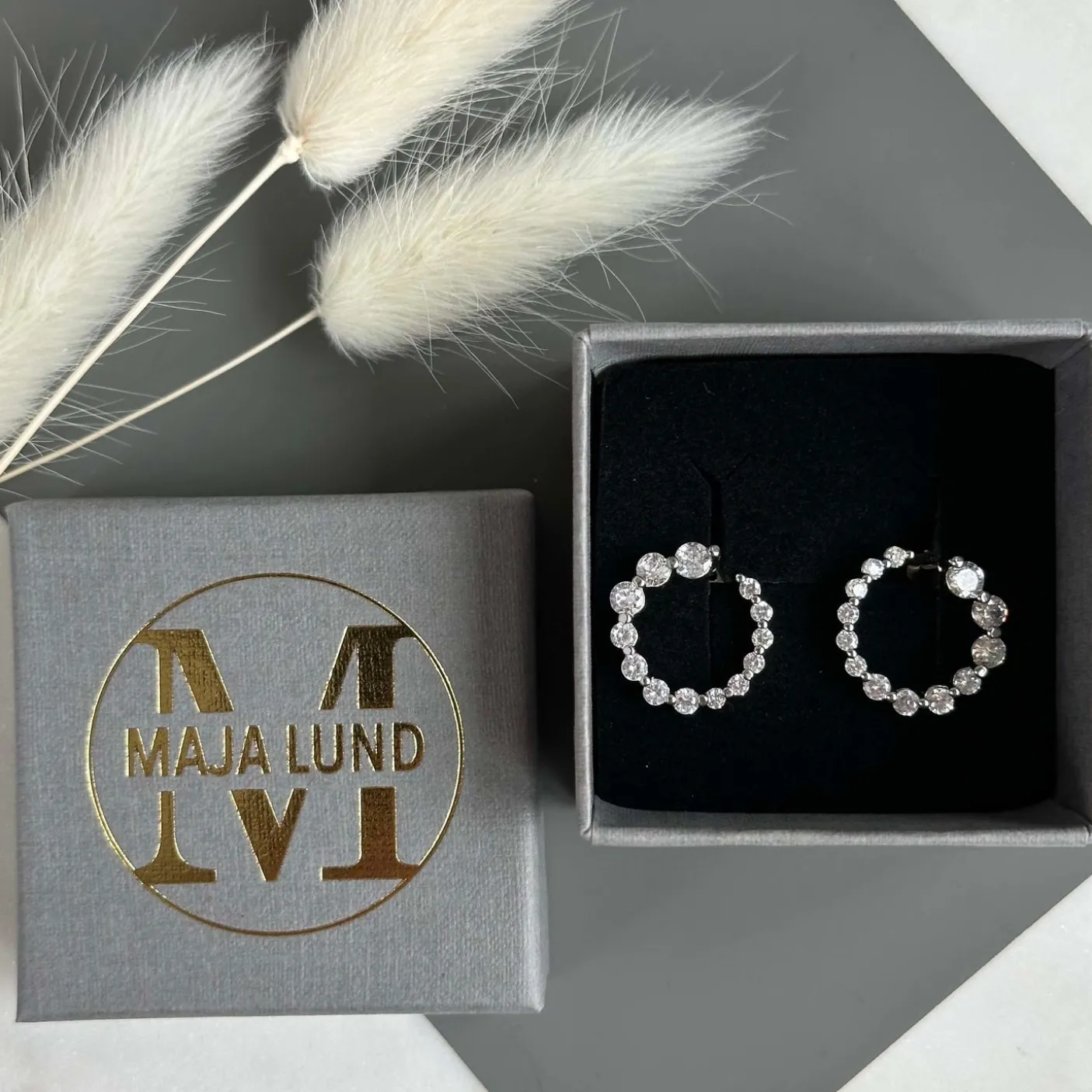 Øreringene er udført i messing og belagt med rhodium, der gør, at de vil bevare deres skinnende look.