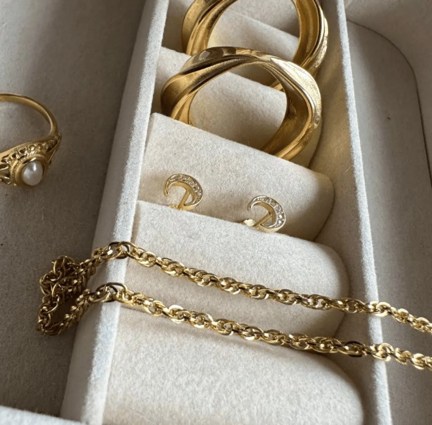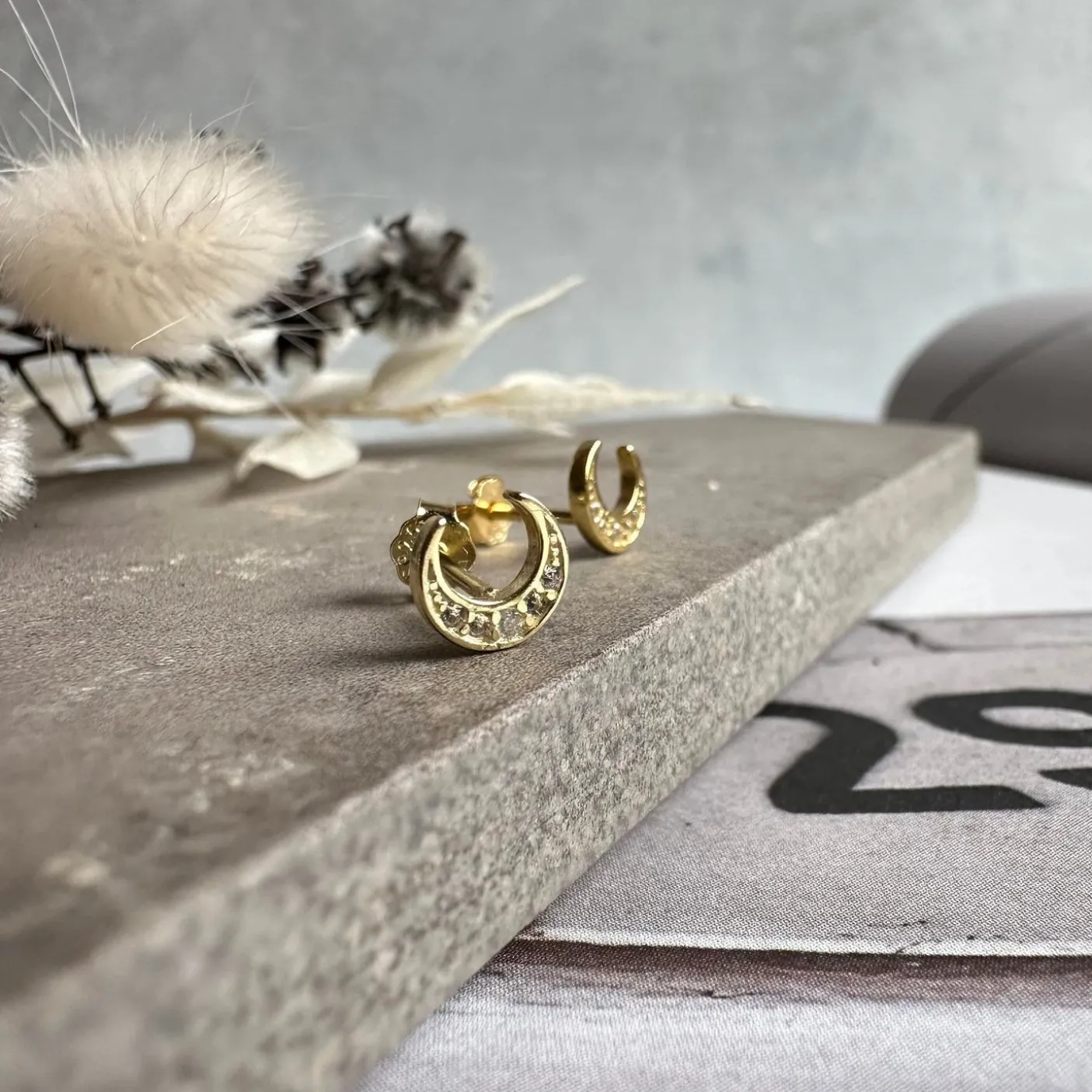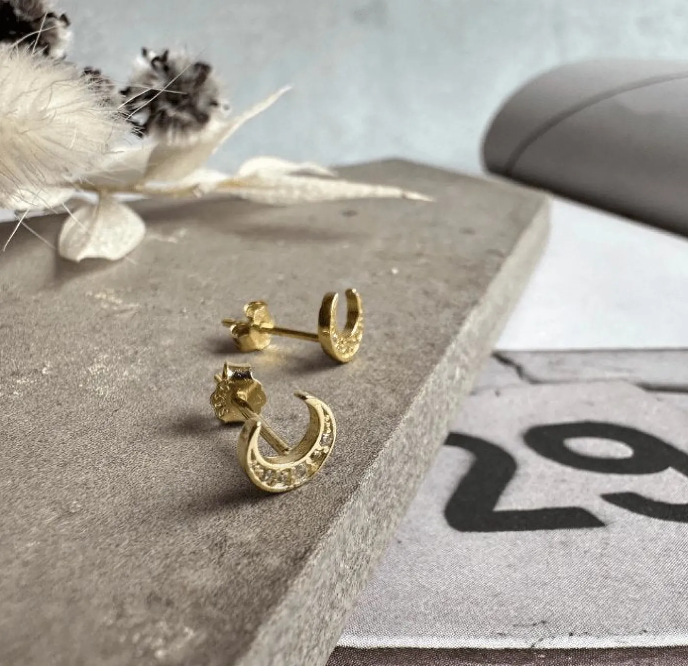 Søde måne ørestikker udført i sold 925 Sterling sølv forgyldt med 18K guld.