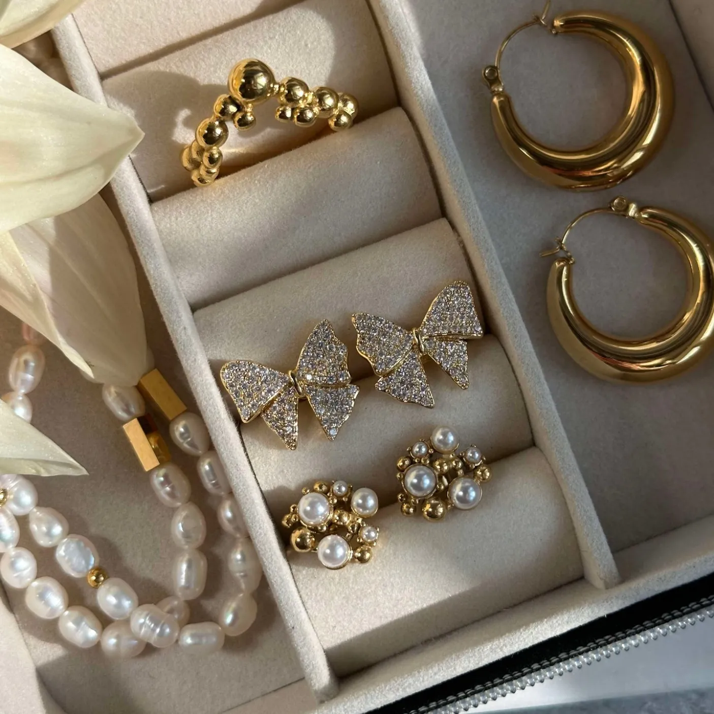 - Øreringene er udført i rustfrit stål og forgyldt.