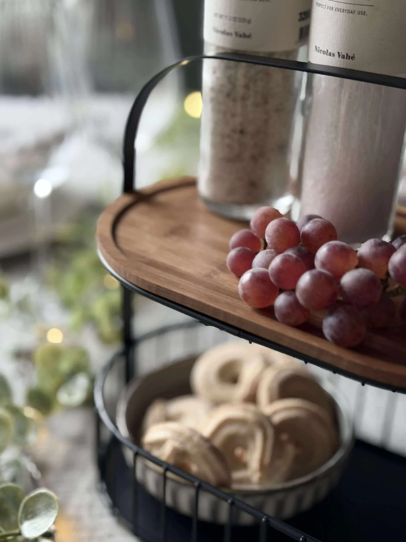 Opbevaring i metal og bambus.