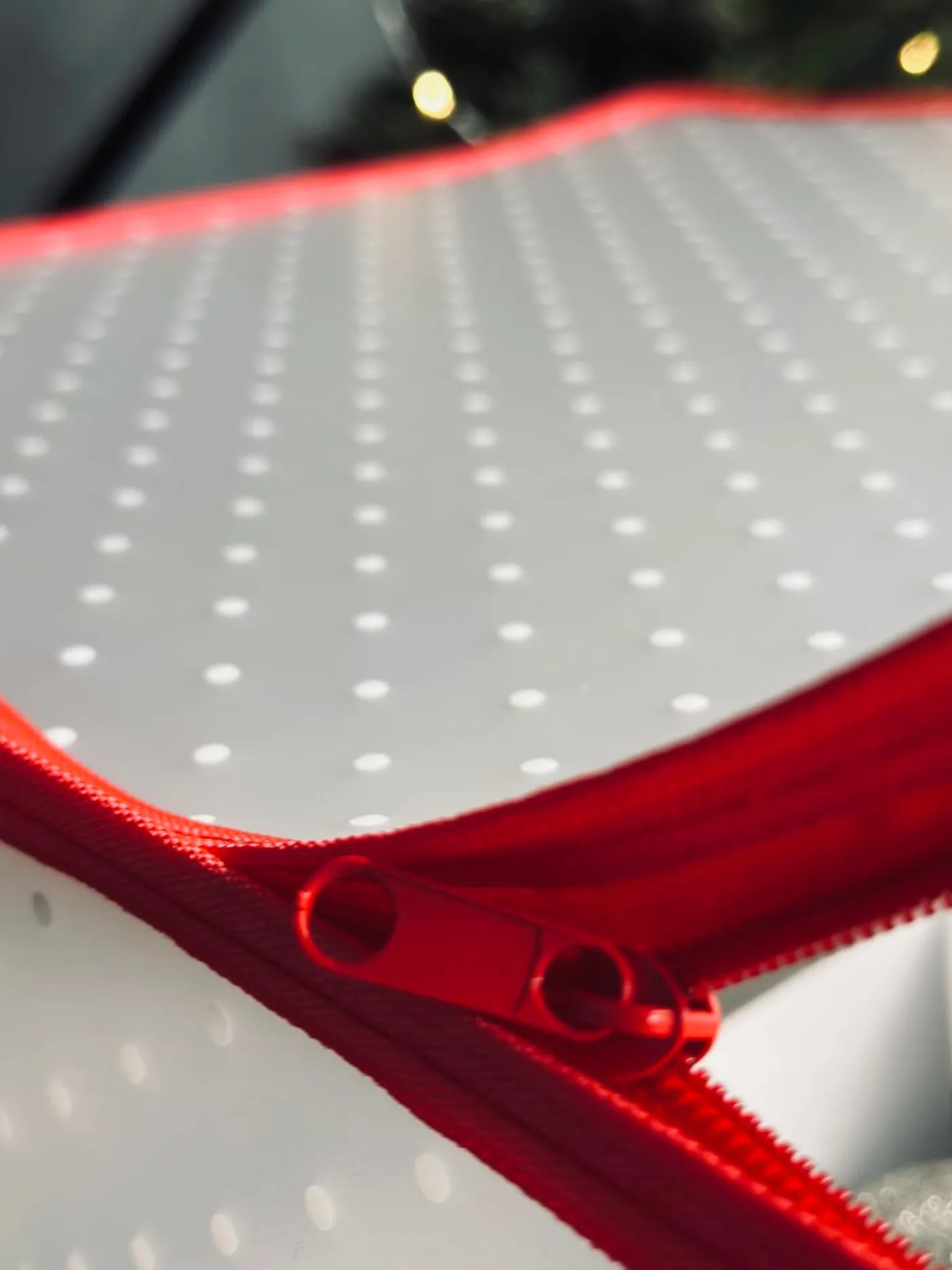 Lukkes med lynlås.