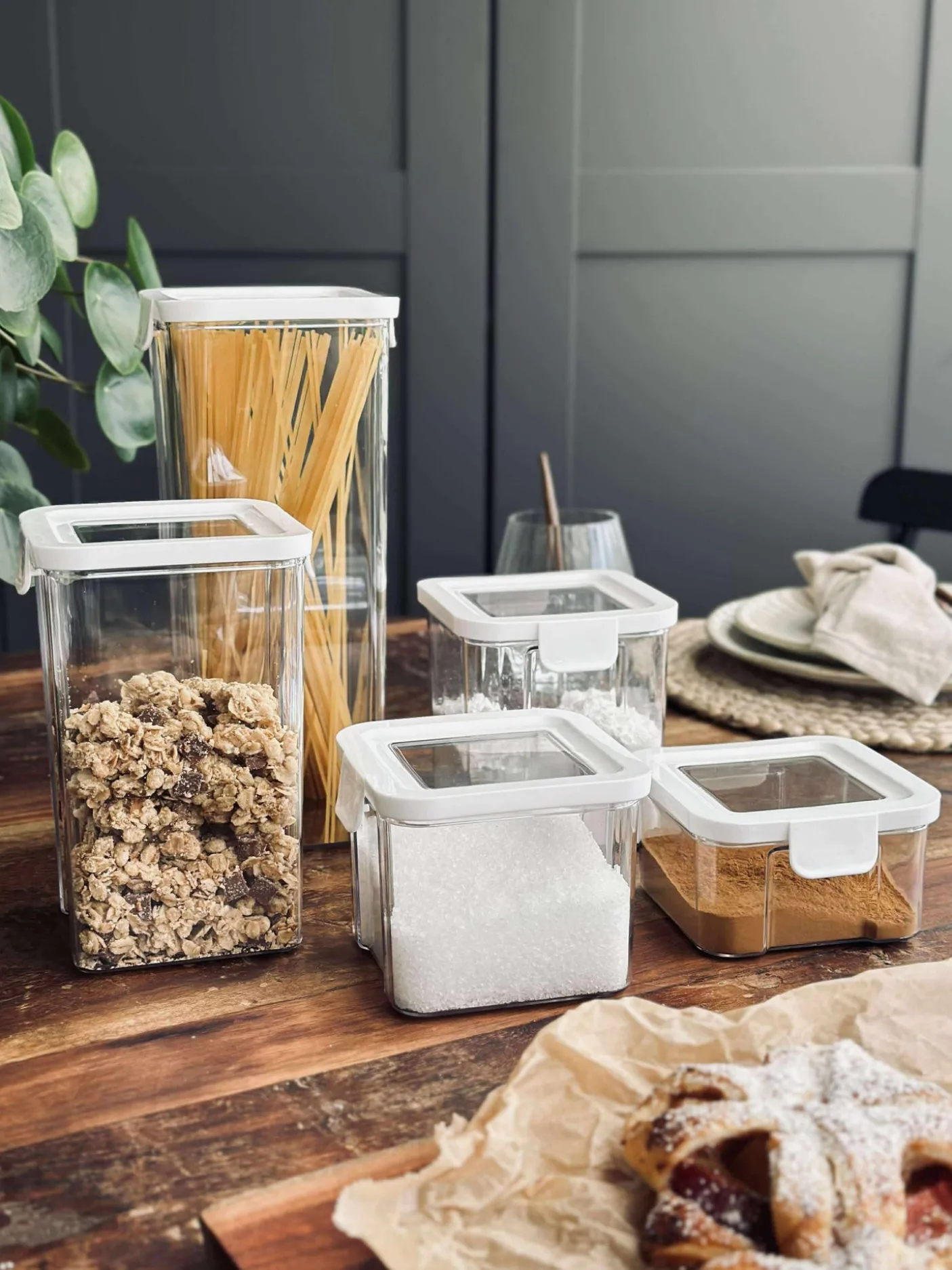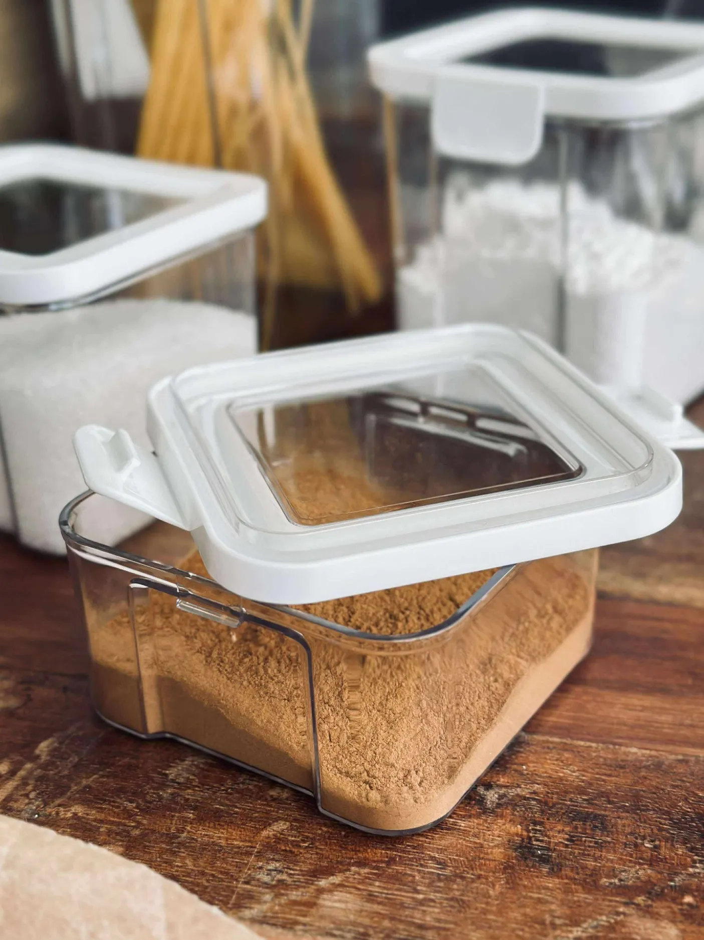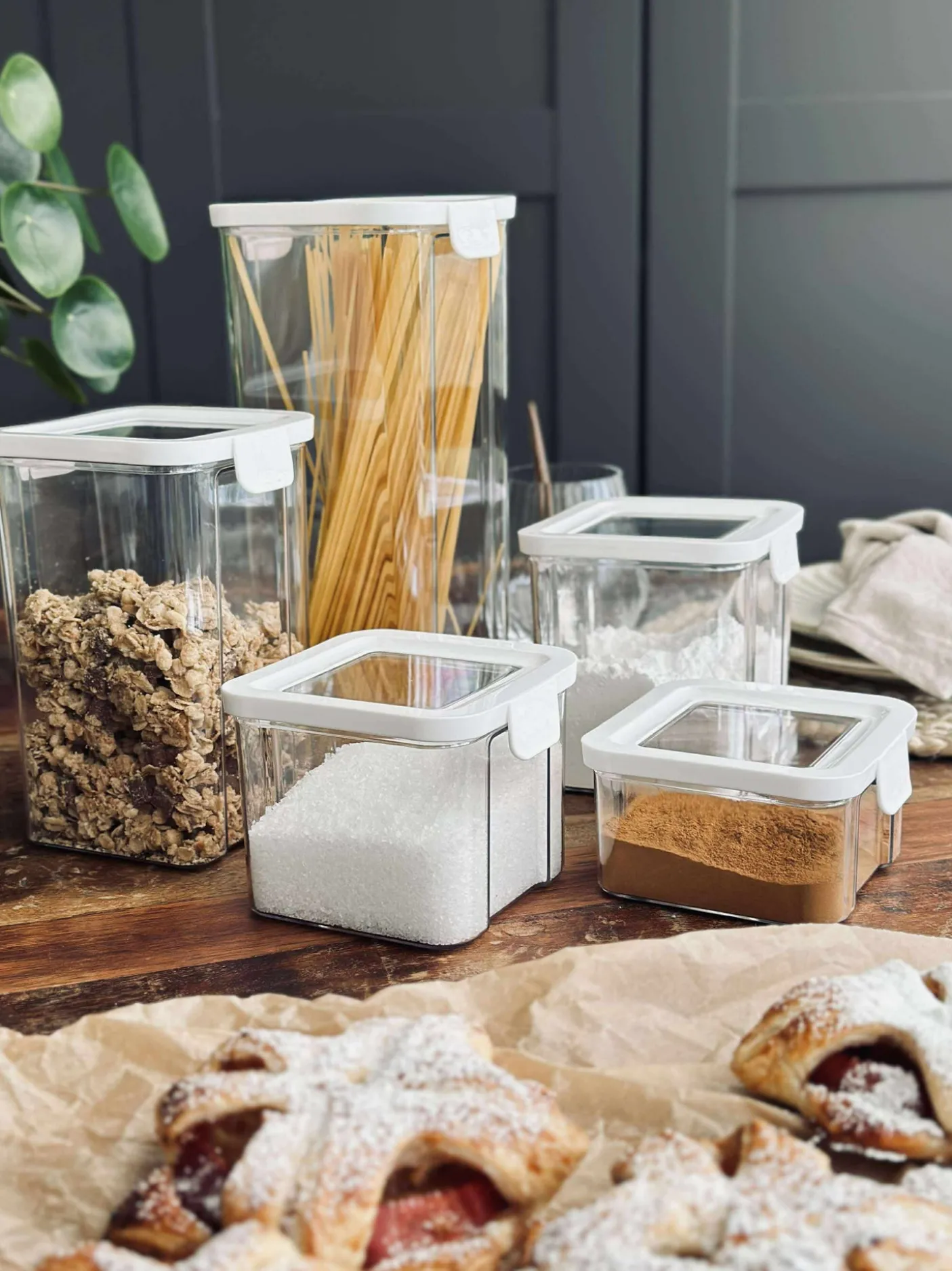 Opbevaringsbøtter med lufttæt låg til fødevarer.