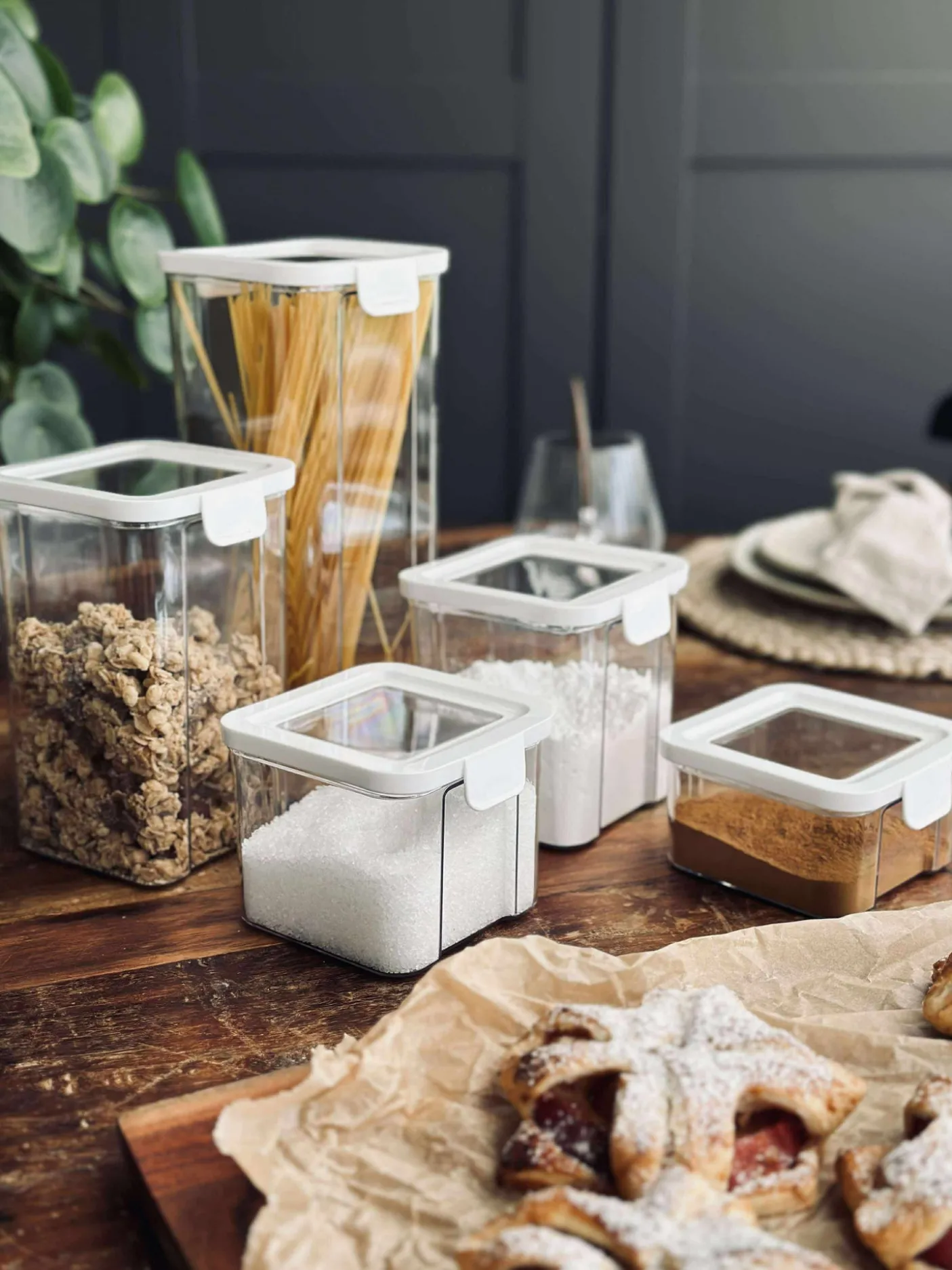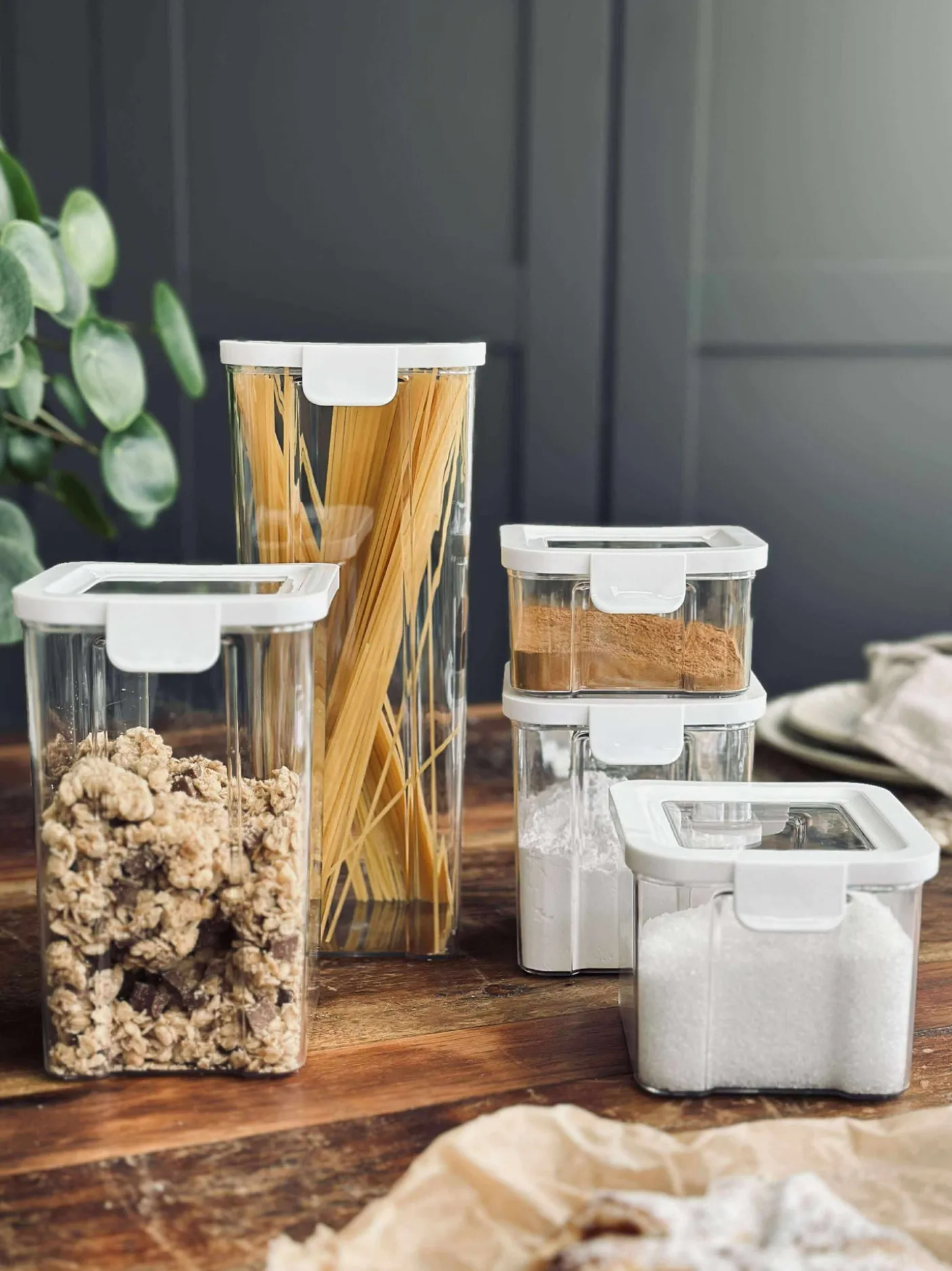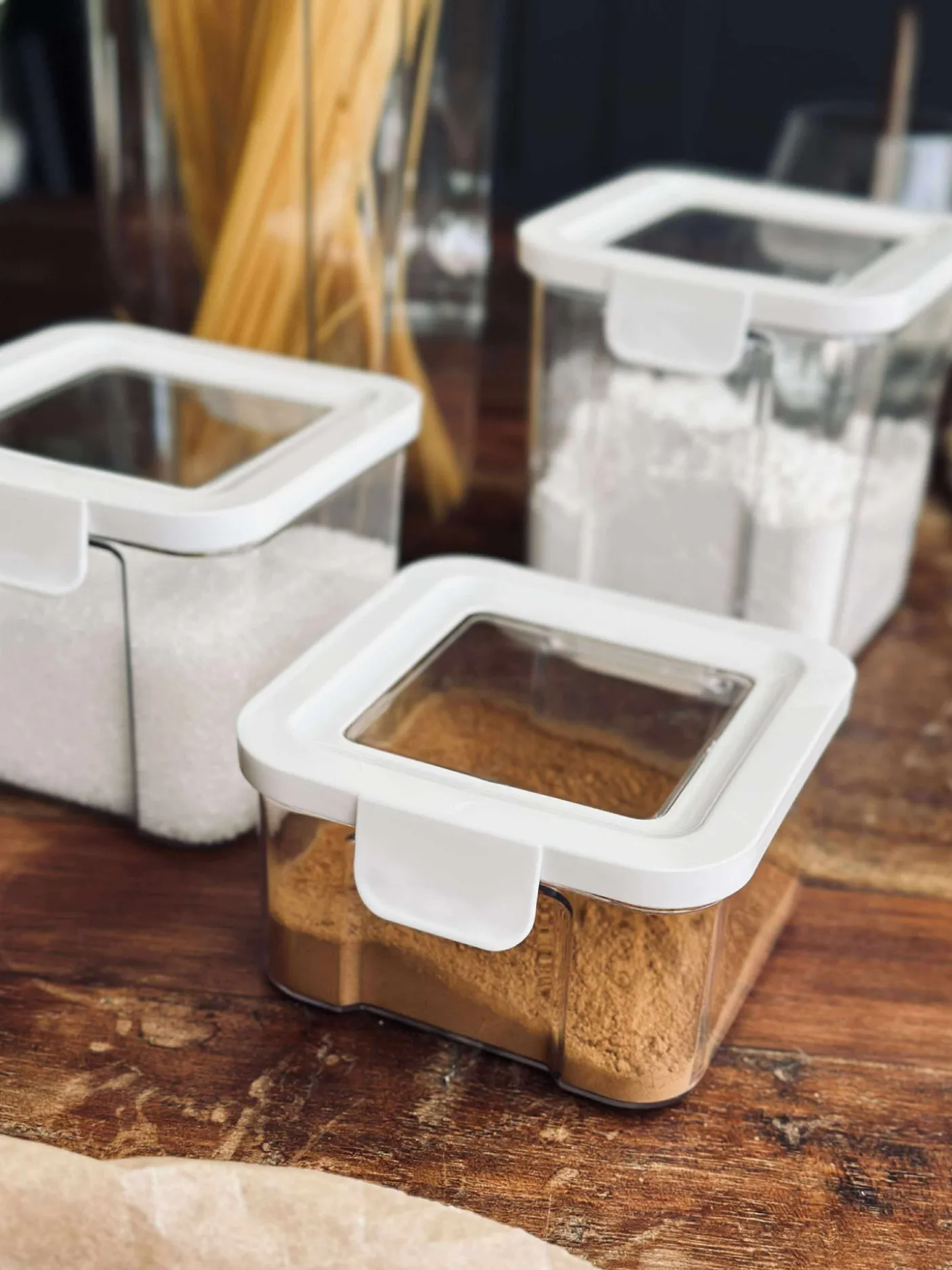 Opbevaringsbøtter med lufttæt låg til fødevarer.