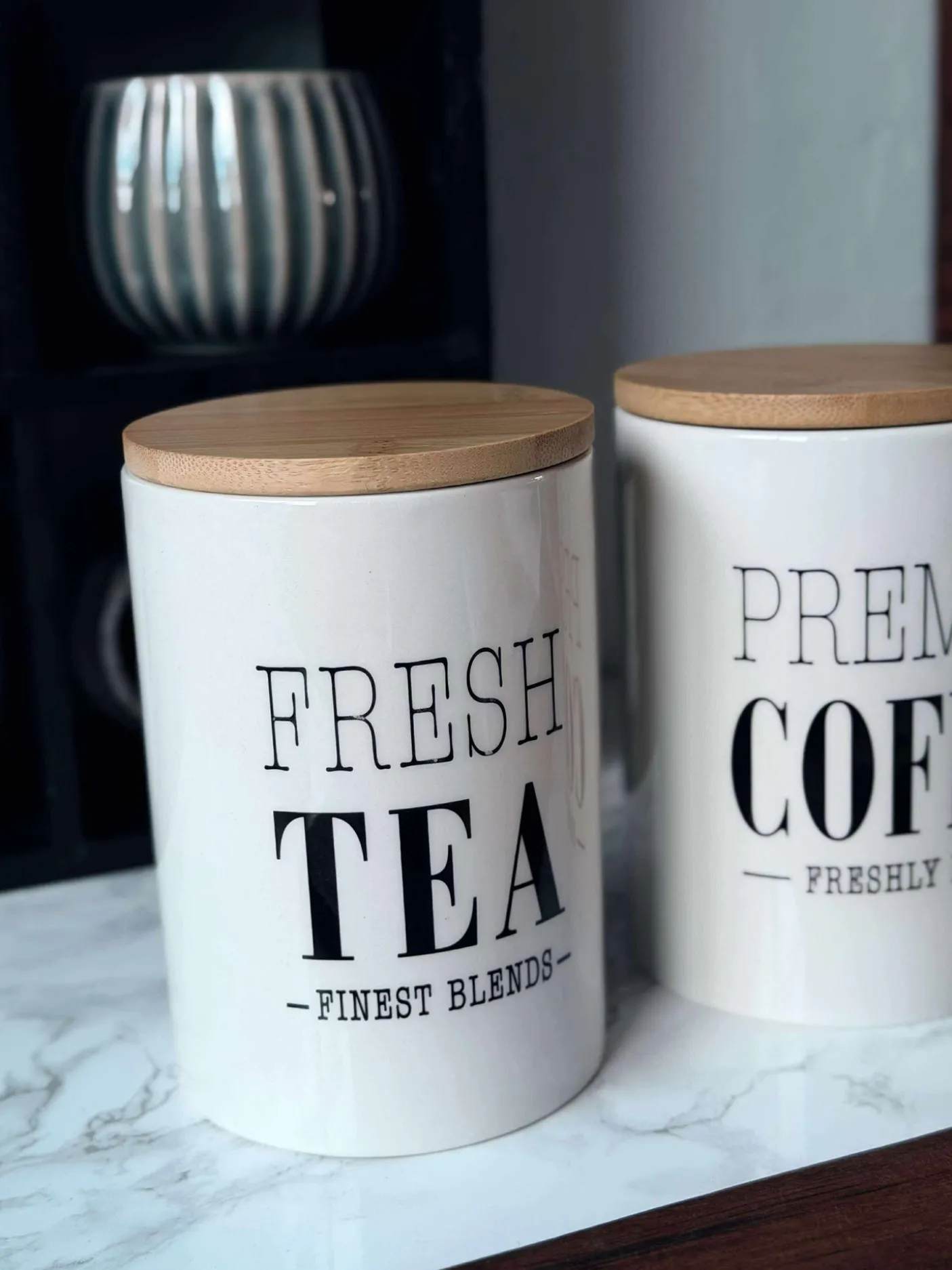 Få en stilren opbevaringsløsning til dit køkken, der holder dine daglige fornødenheder som kaffe og te organiseret. Denne hvide dåse kombinerer funktionalitet og æstetik med sit enkle design, der let passer ind i enhver moderne indretningsstil.