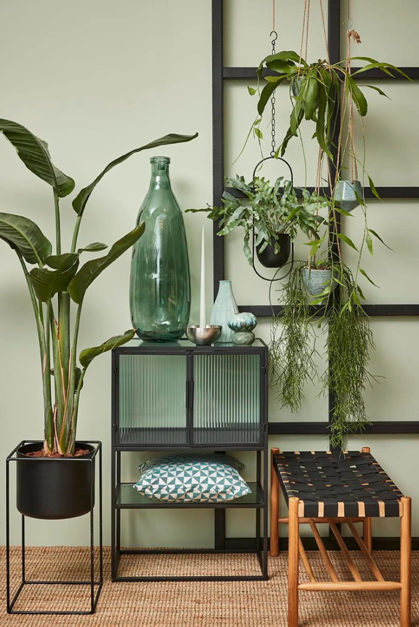 Opsats med potte i metal.