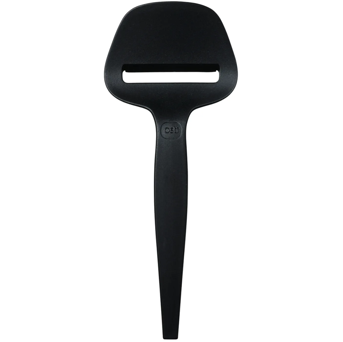 Ostehøvlen er fremstillet i plast og har et ensfarvet, sort look, der passer roligt ind i køkkenets øvrige redskaber.