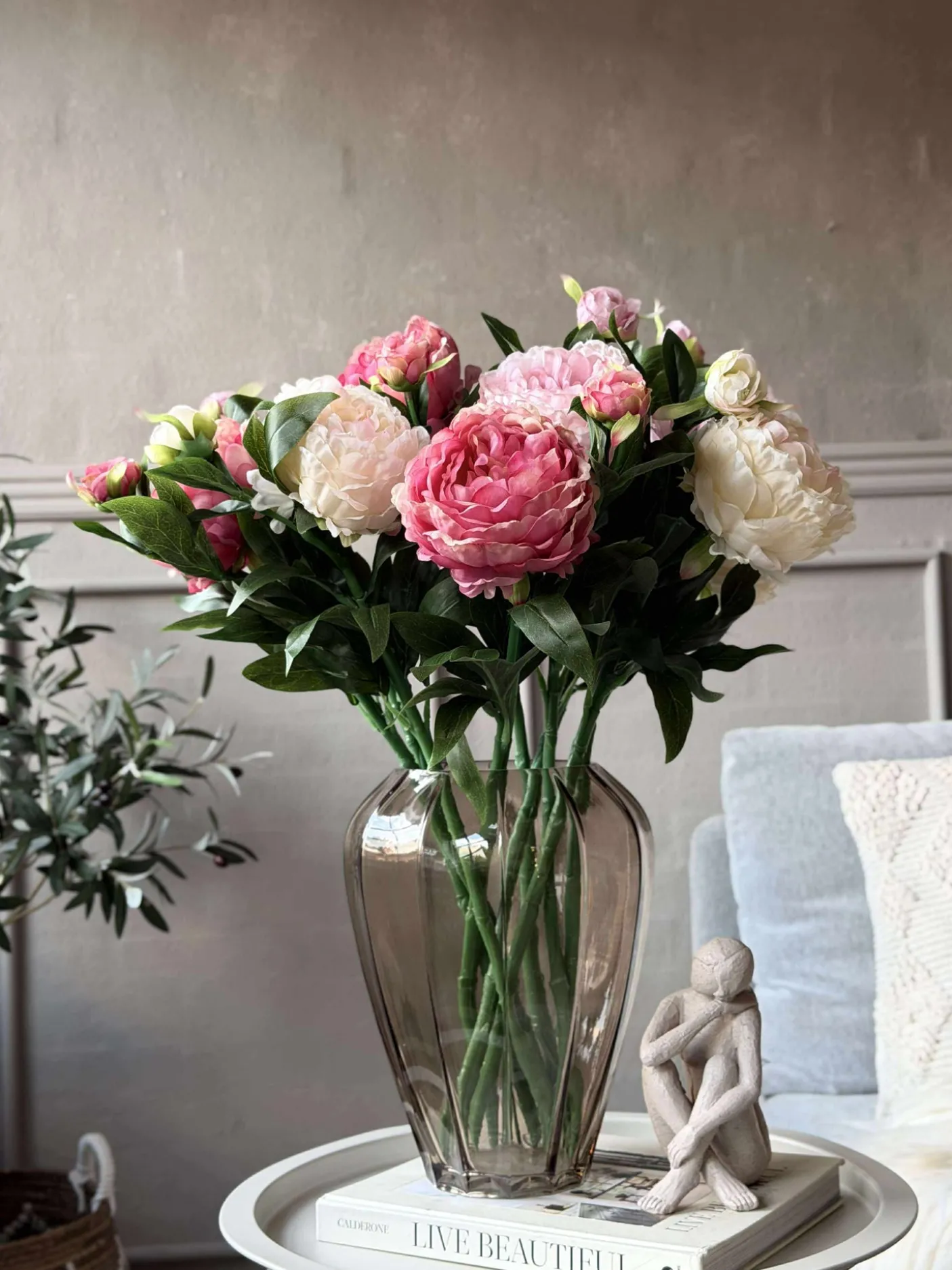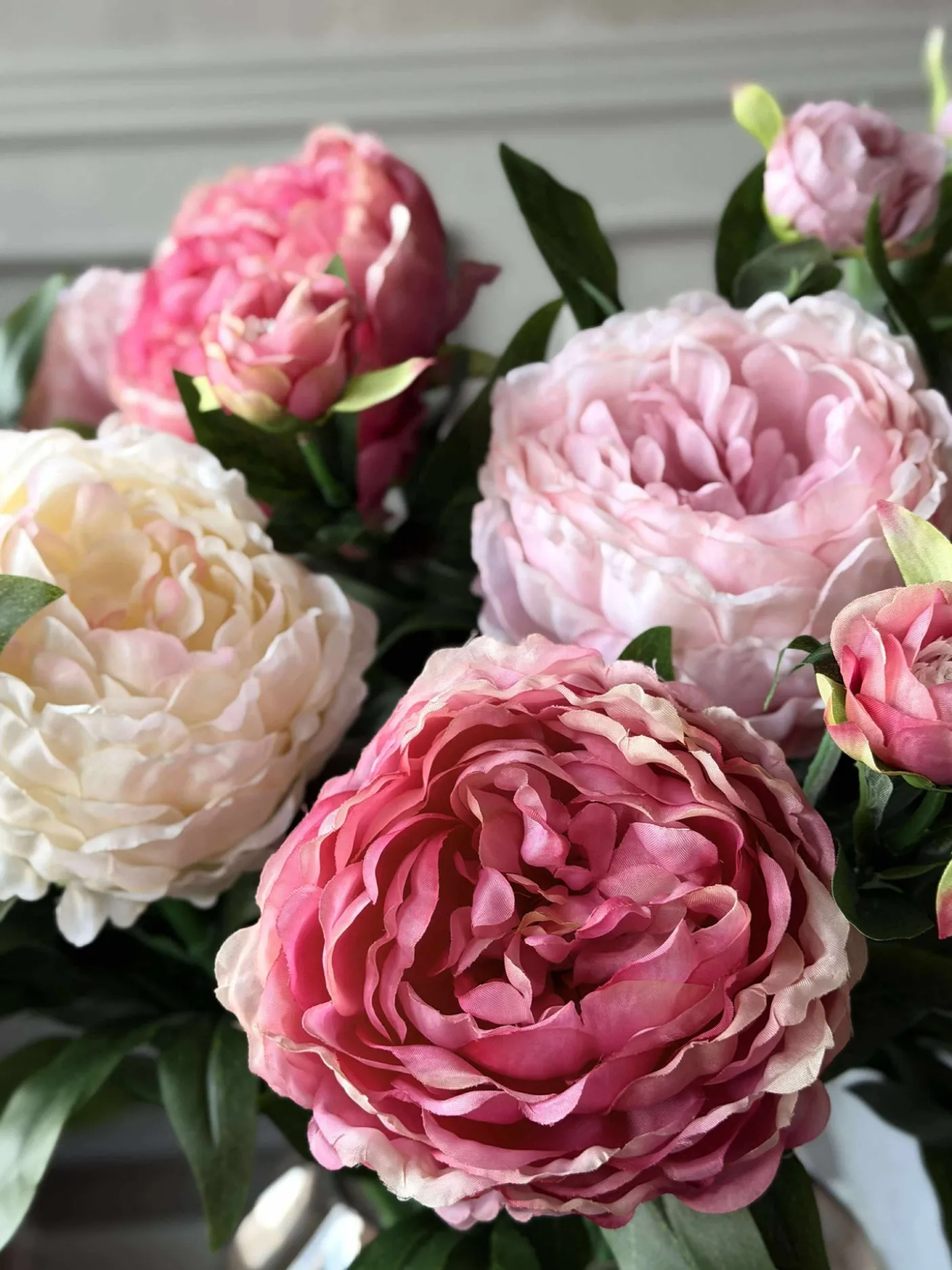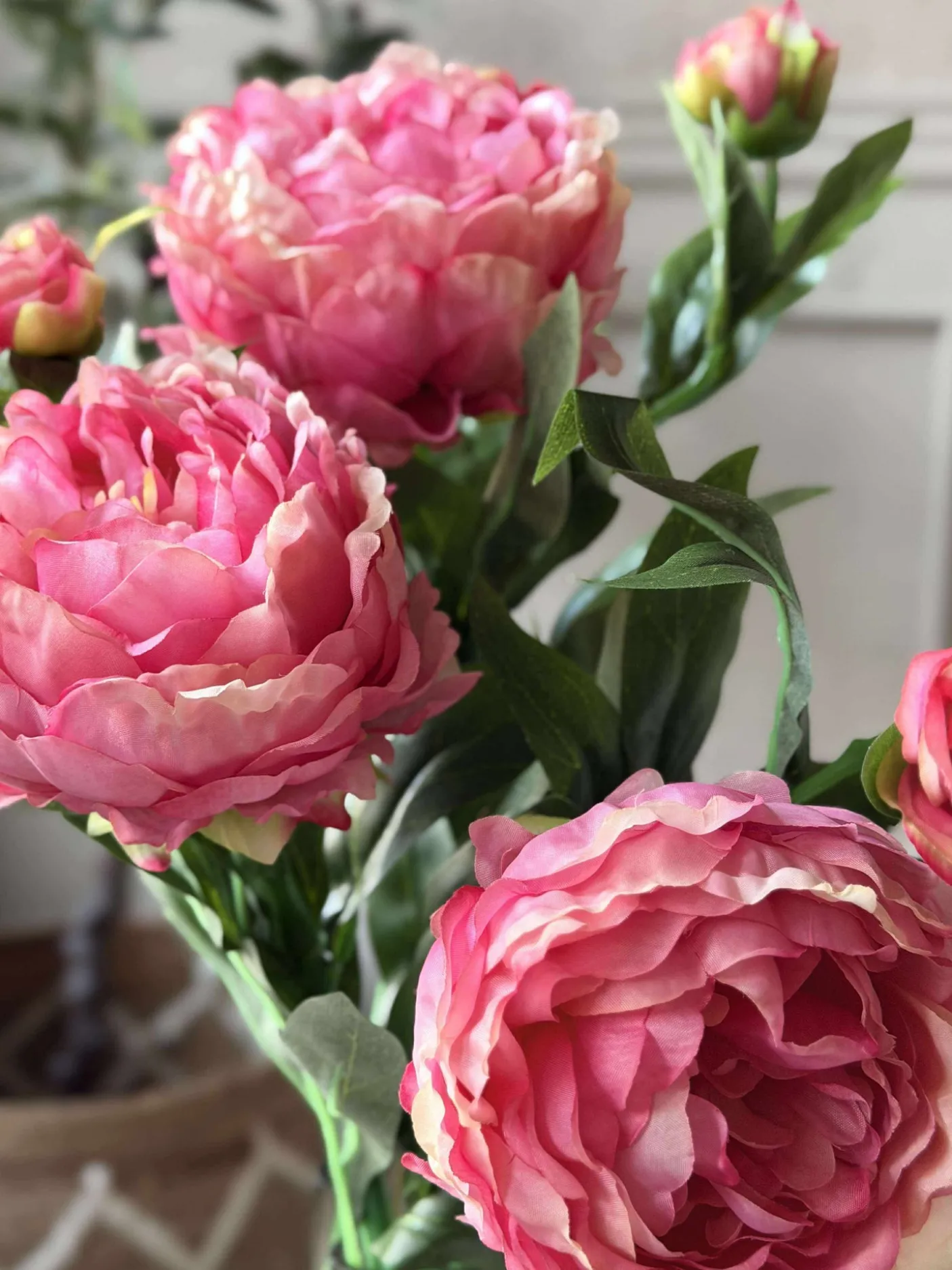 Forestil dig en dagligstue, der altid stråler af skønhed, uden at du skal bekymre dig om vanding eller visne blade. Vælg din favoritfarve, og se, hvordan kunstige pæonblomster skaber en harmonisk atmosfære i dit hjem. Gør din indretning tidløs med naturtro elegance og enkel vedligeholdelse.