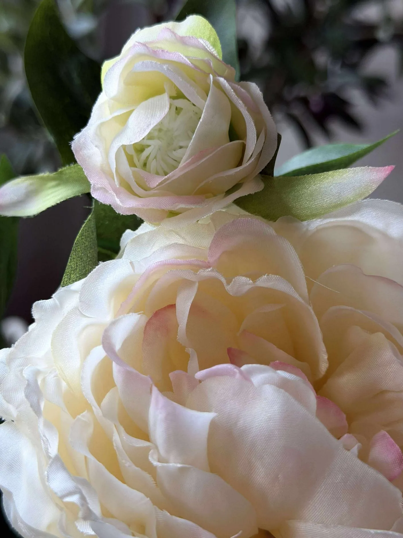 - Materialet til pæonblomsten er polyester