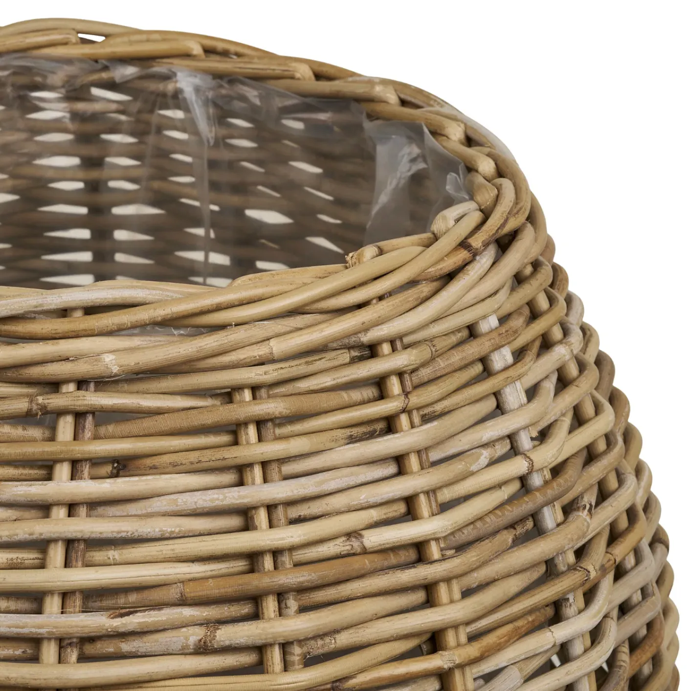 Skab hygge og et naturligt udtryk i haven eller på terrassen, med disse smukke plantekurve i natur rattan. Perfekt til både store og små planter!
