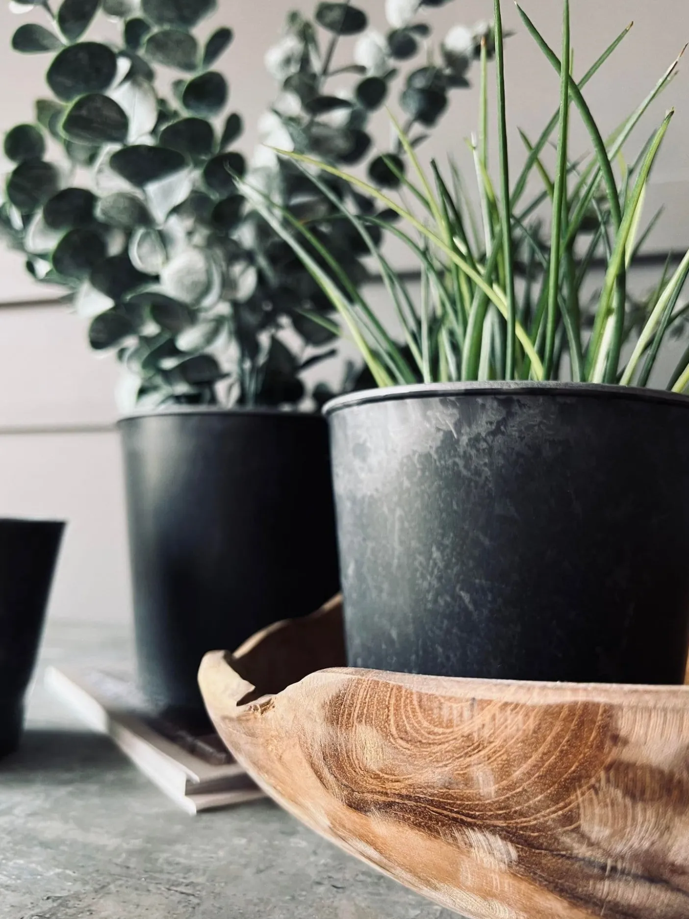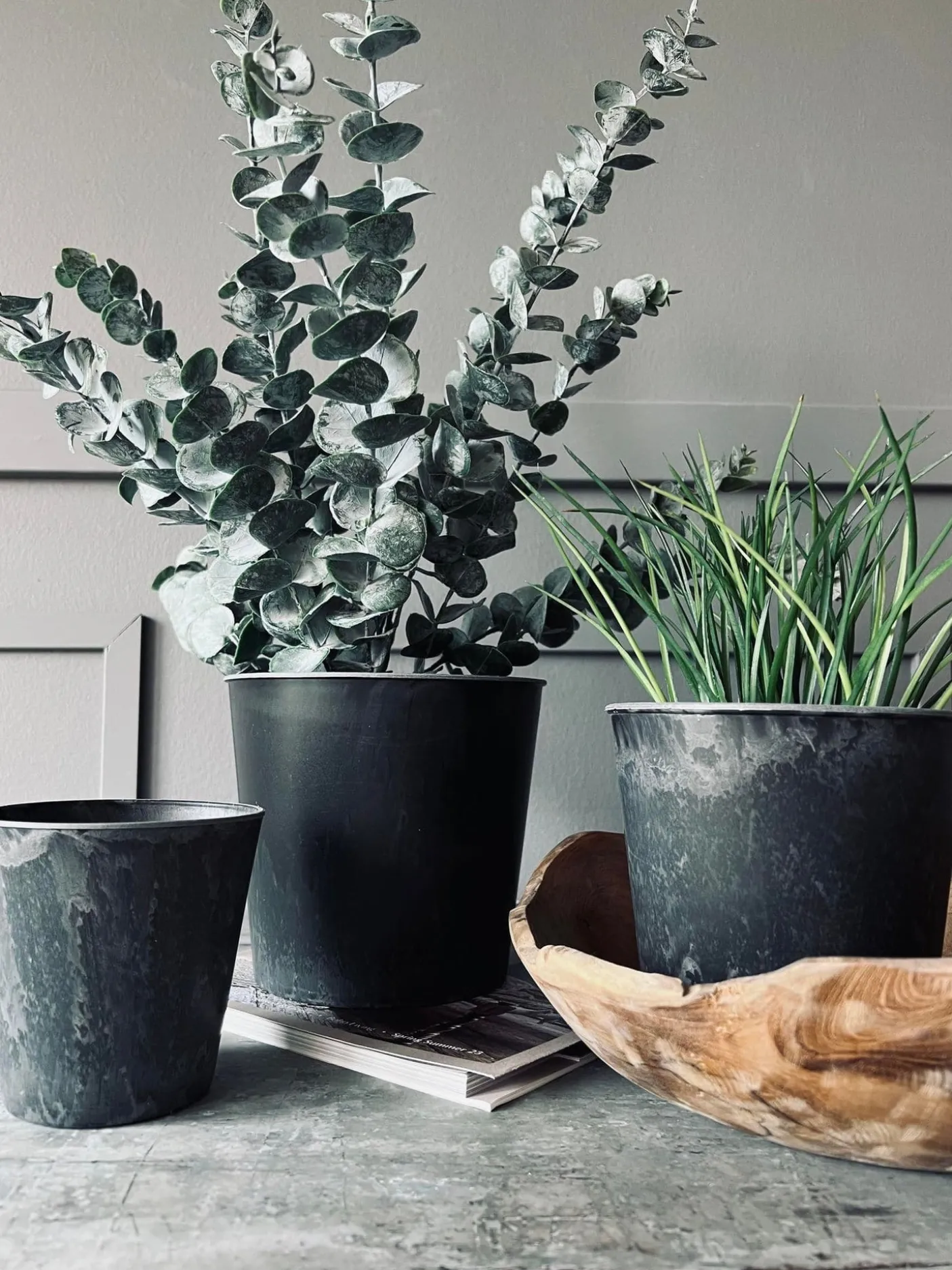 Drop bekymringerne om utætte potter. Disse potter i beton look er lavet af plastik og lækker ikke.