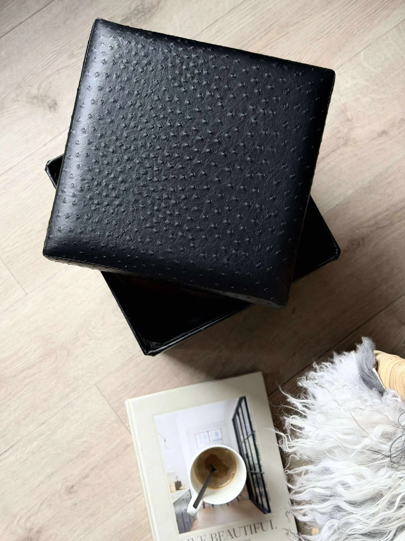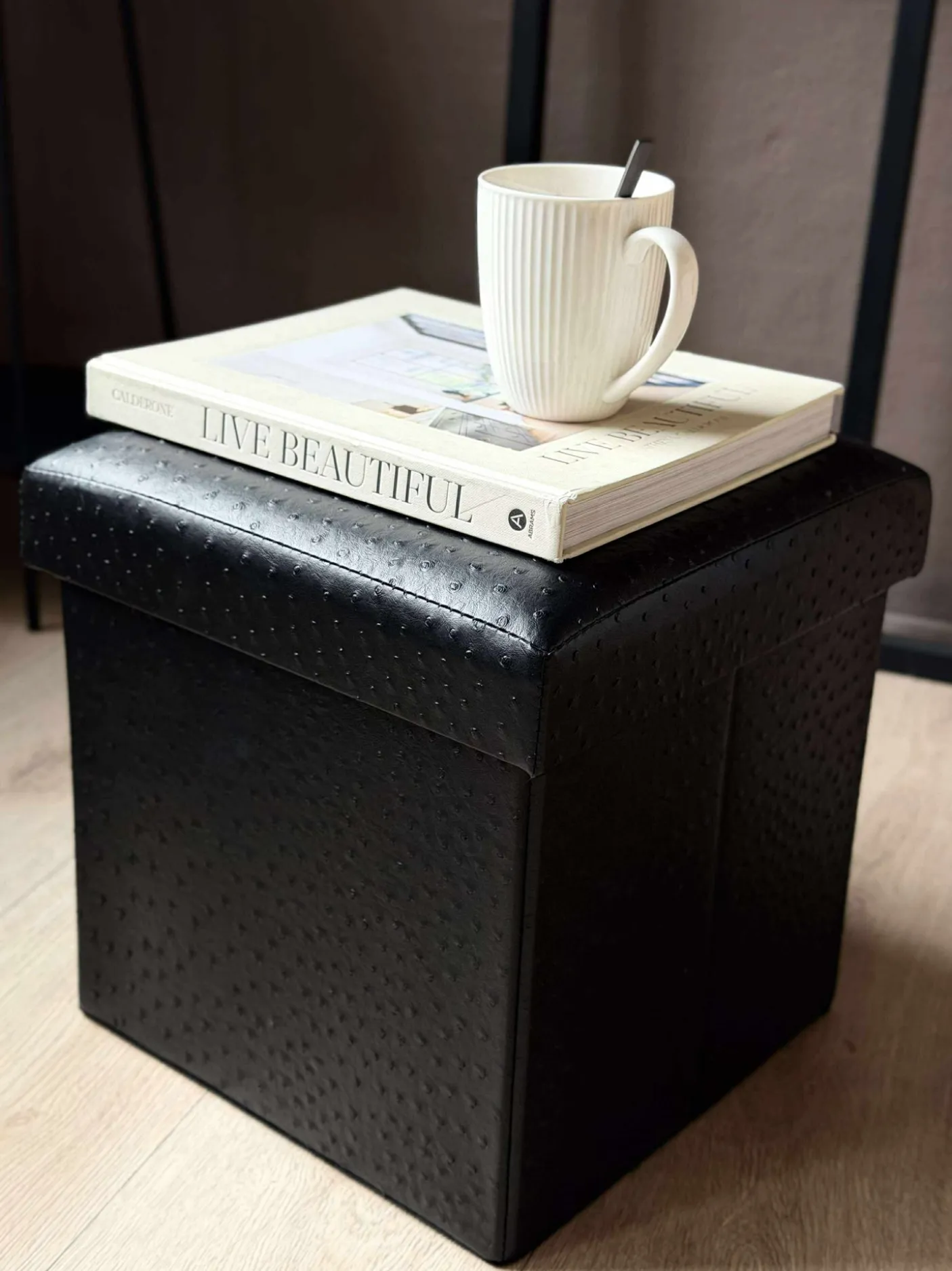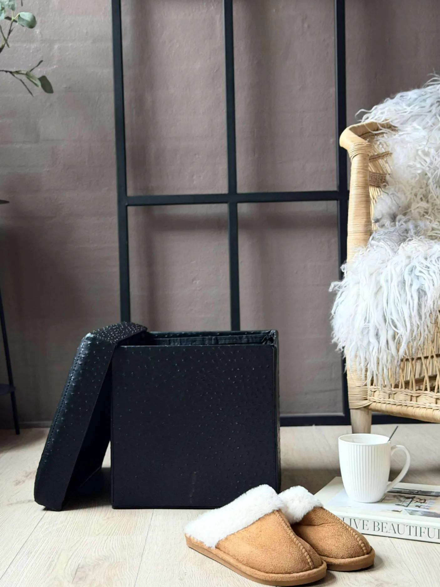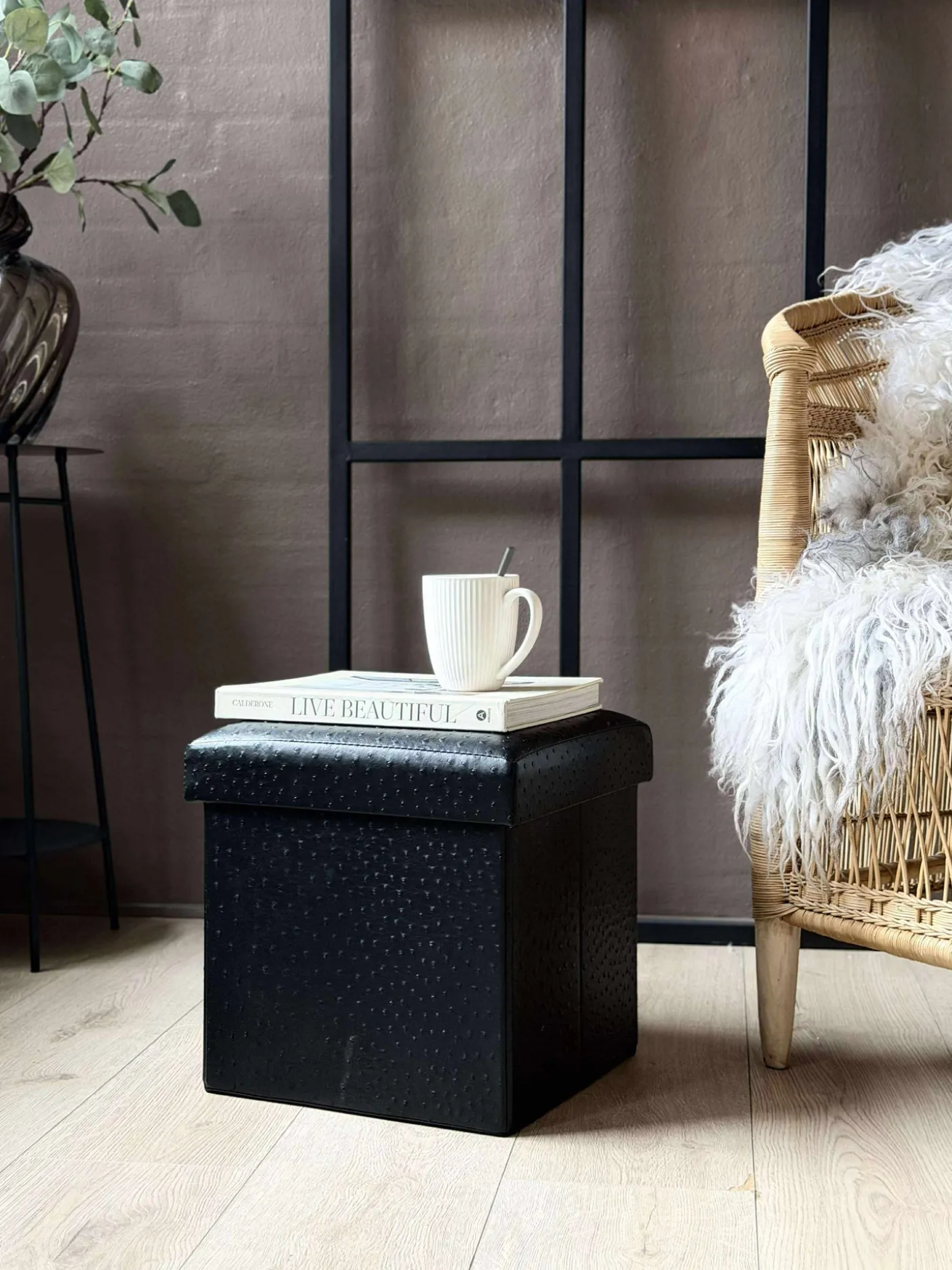 Med dimensionerne 32 x 32 x H32 cm tilbyder denne opbevaringspuf en kompakt løsning til små rum, uden at gå på kompromis med opbevaringskapaciteten. Den kvadratiske form gør det enkelt at placere puffen i hjørner eller ved siden af møbler, hvor den kan fungere som både siddeplads og opbevaringsenhed. Ideel til dem, der ønsker funktionalitet i mindre boligarealer.