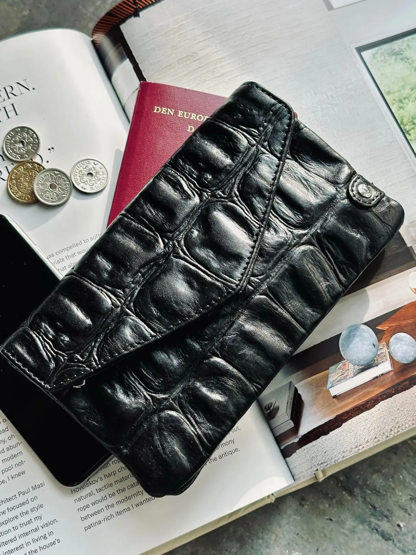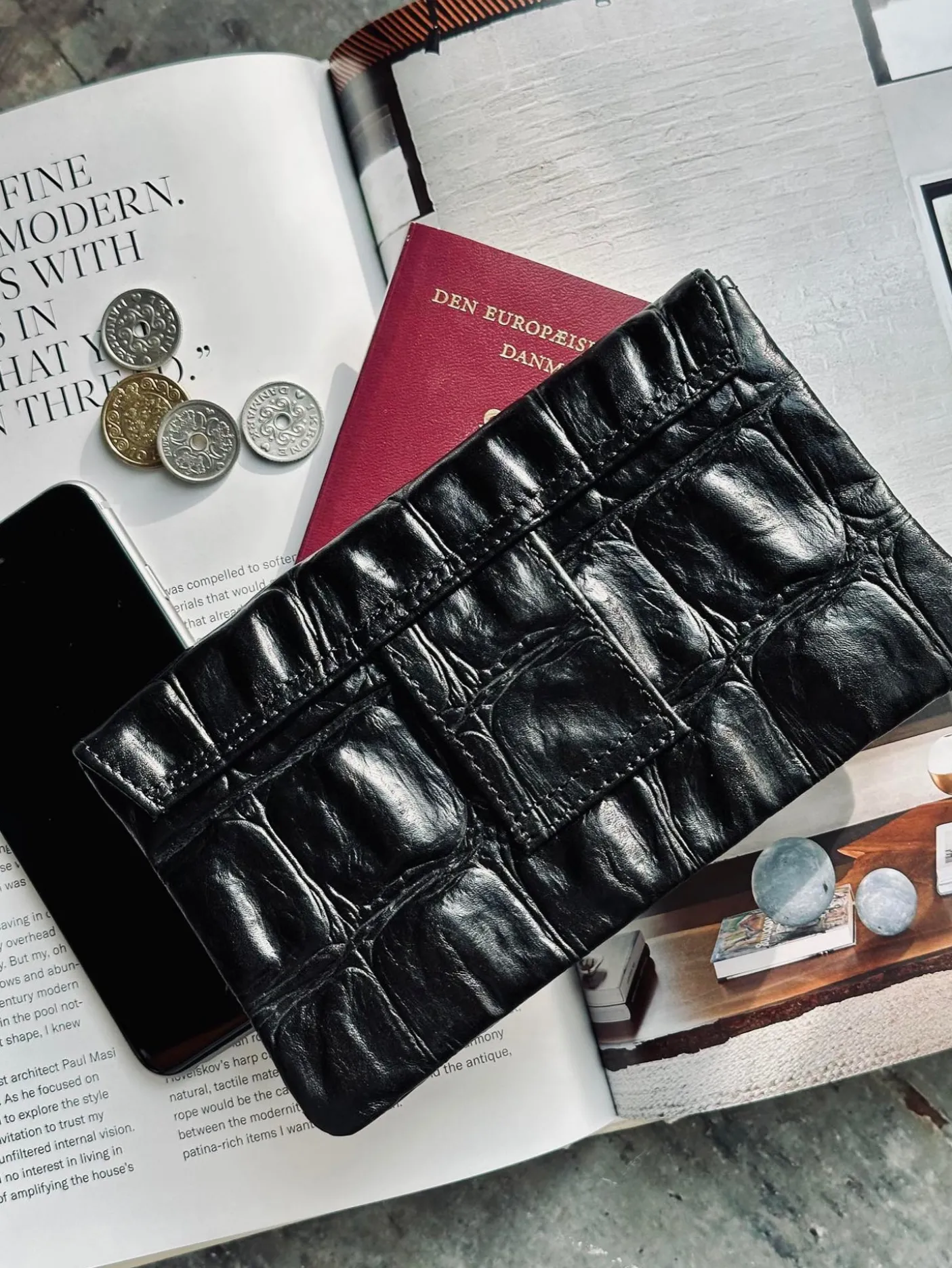 Denne pung i croco-præget skind er et elegant og funktionelt accessorie til din hverdagsgarderobe. Det eksklusive prægede skind tilfører et sofistikeret og struktureret udtryk, der gør pungen til mere end blot en praktisk nødvendighed – den bliver en stilfuld detalje i tasken, du vil nyde at tage frem igen og igen.