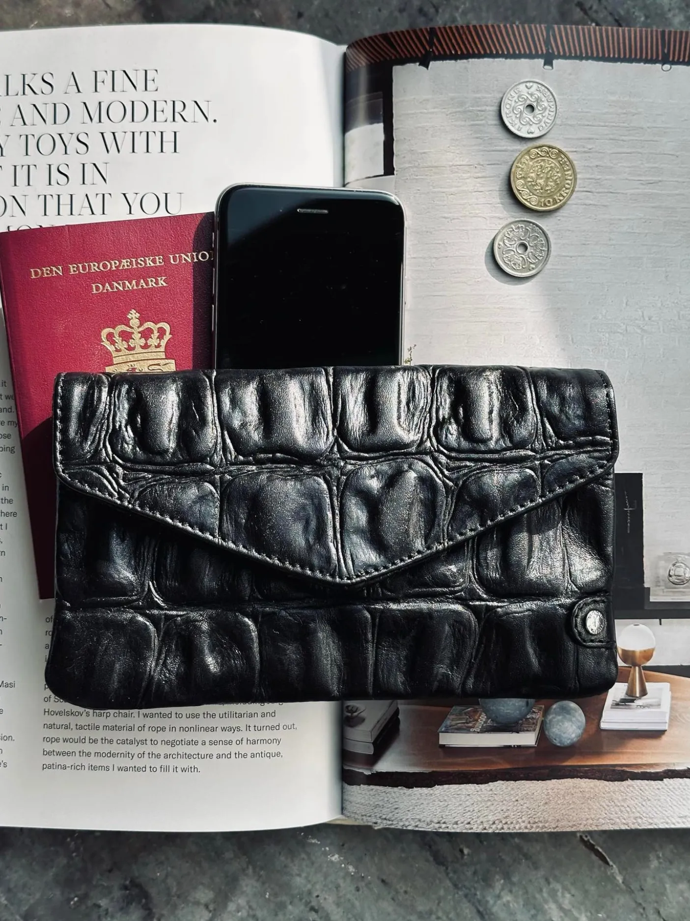 Det tidløse design og den aflange silhuet gør den nem at kombinere med både klassiske og moderne accessories. Uanset om du bruger den alene eller sammen med din yndlingstaske, tilføjer pungen et strejf af luksus til hverdagen.