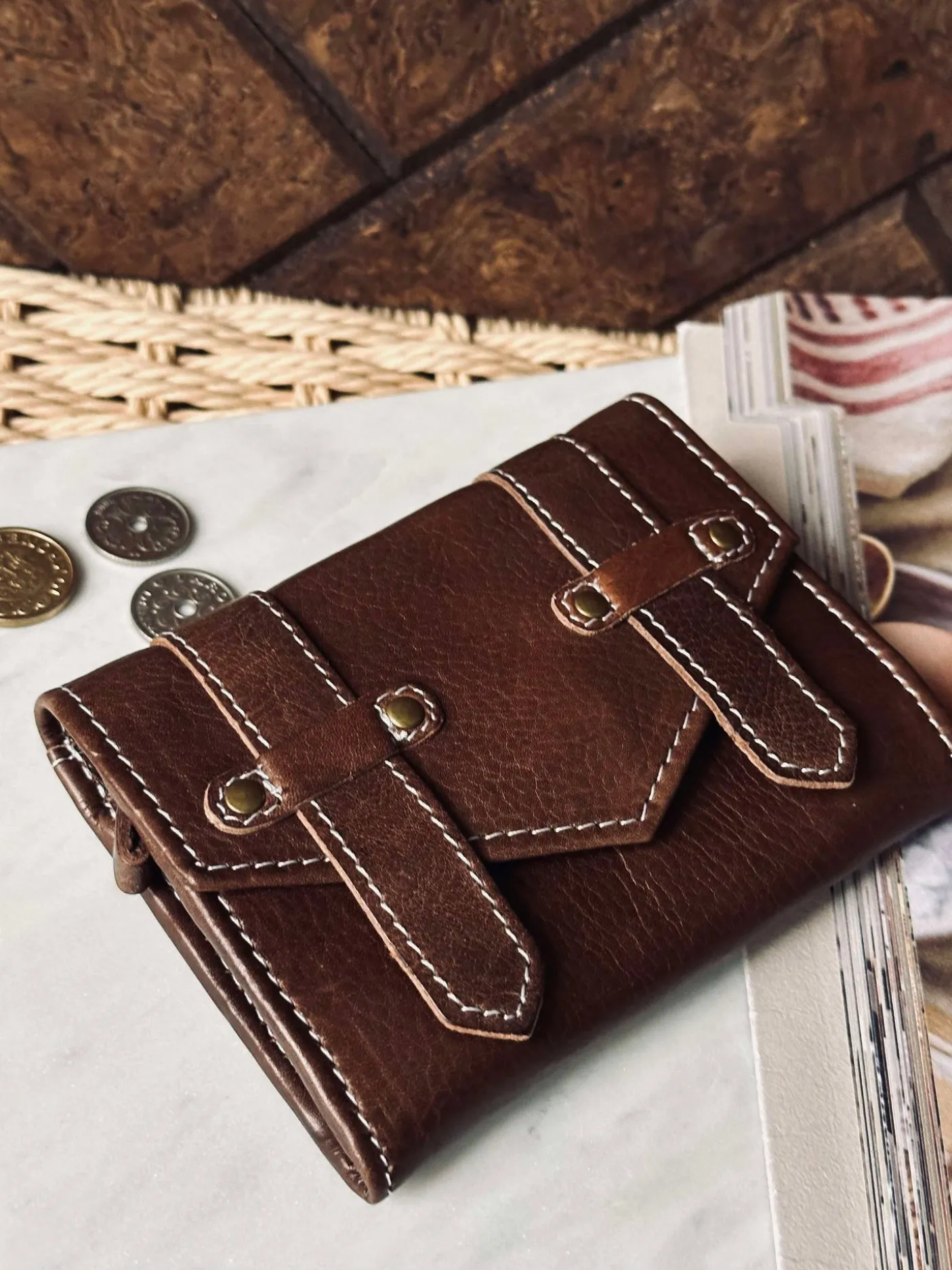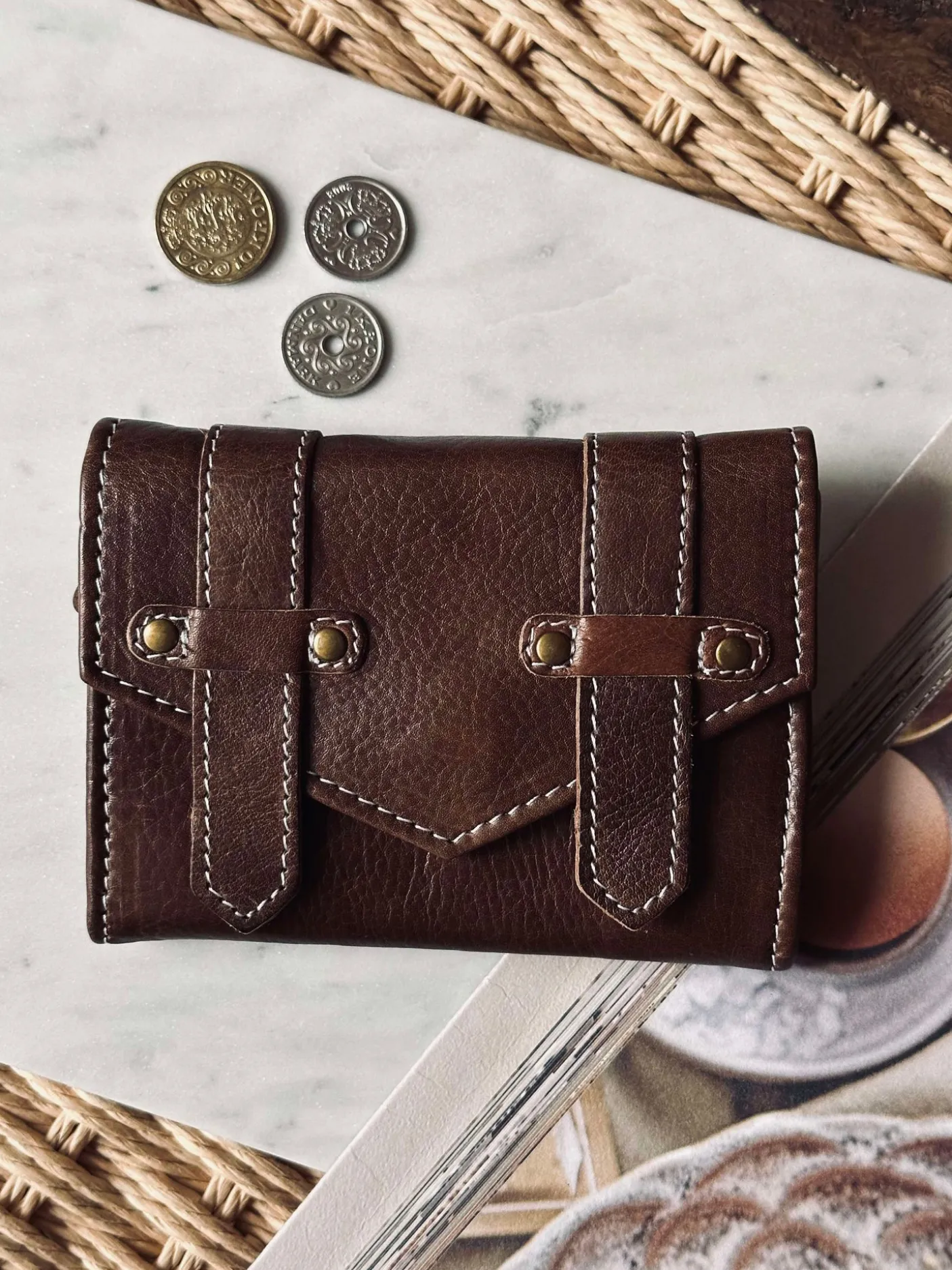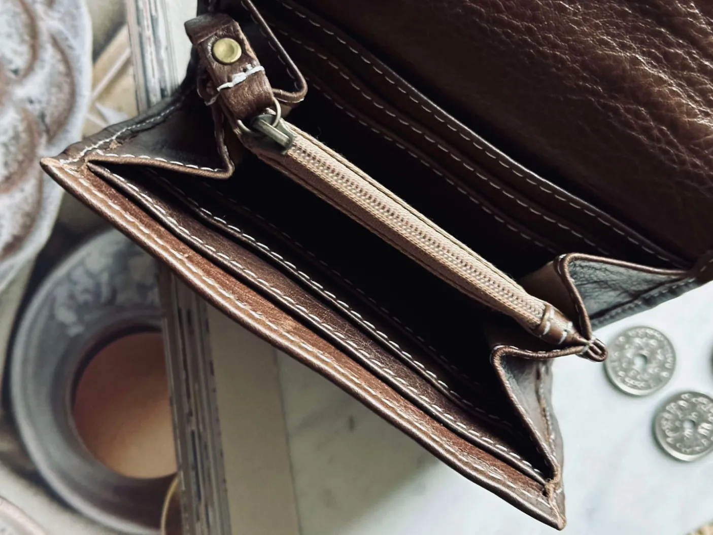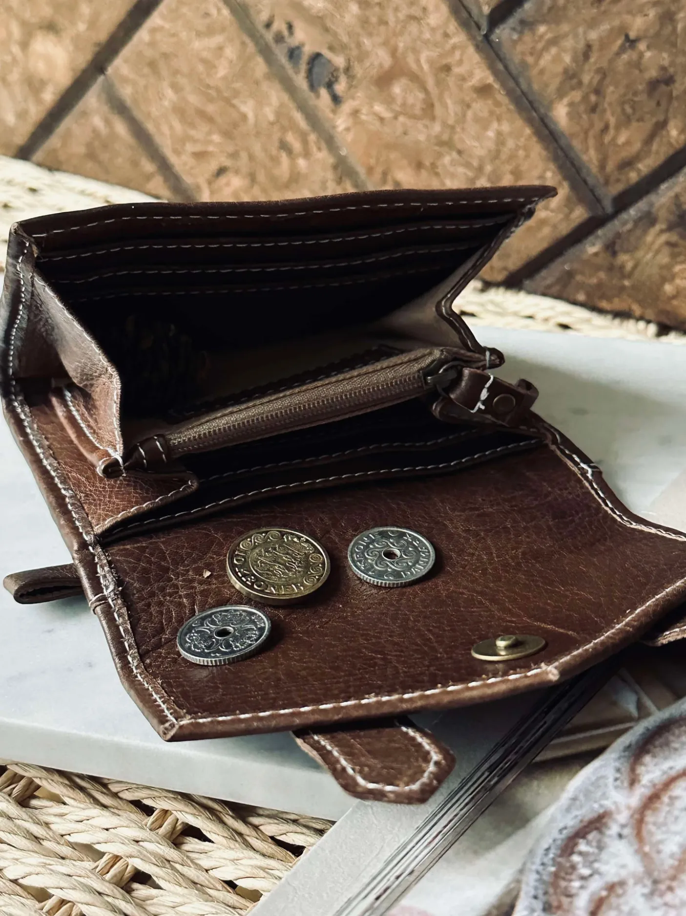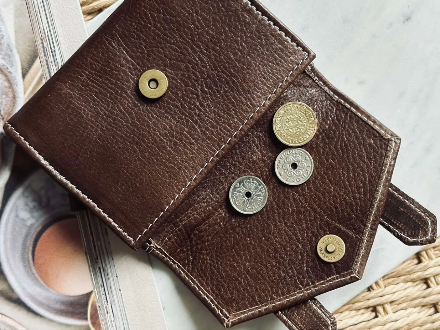 Elegant og praktisk pung med blads til både kort, sedler og mønter.