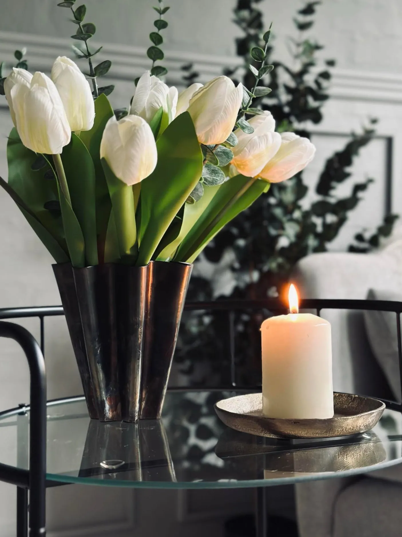 - Rullebordet har to elegante glasplader