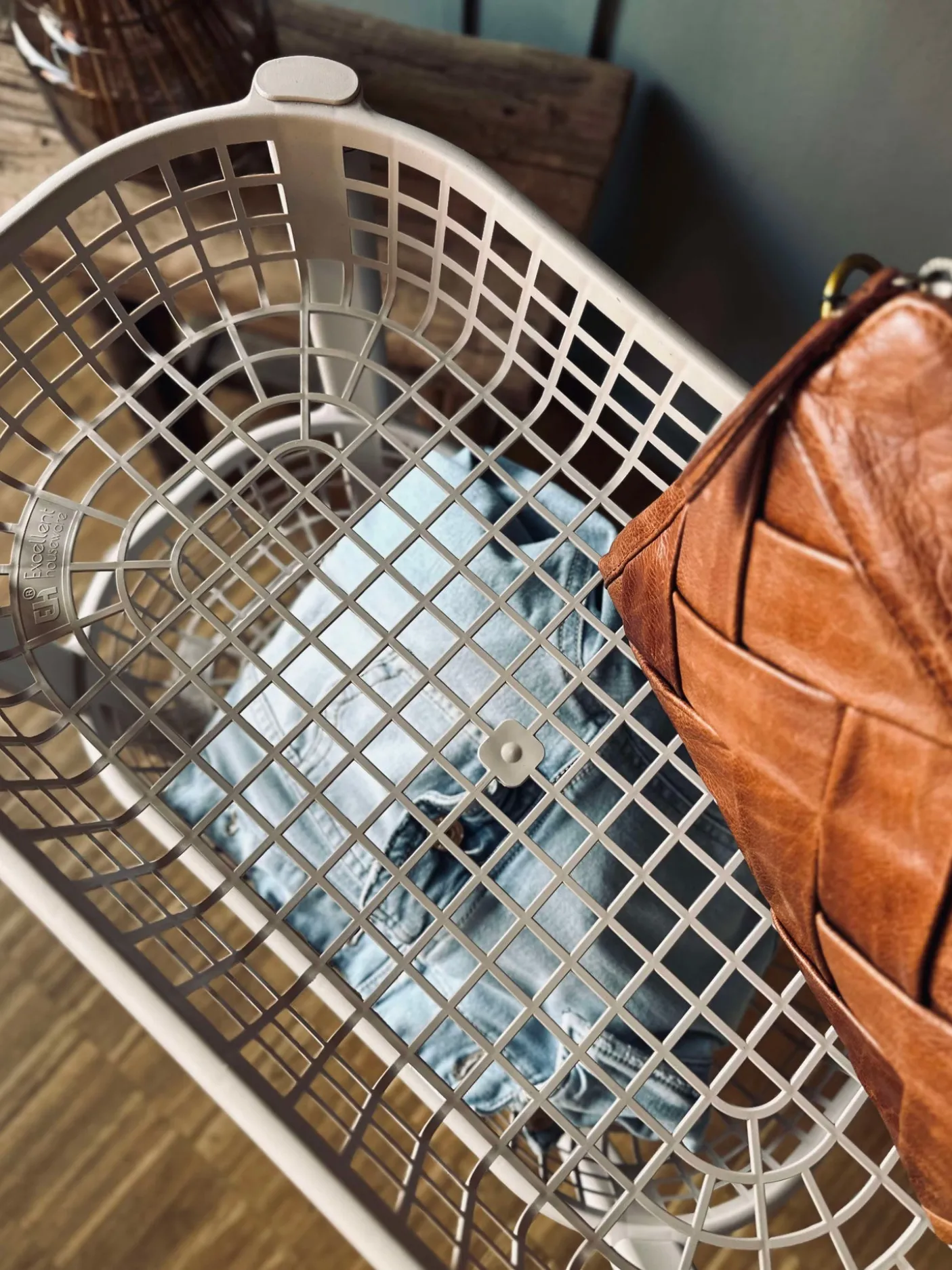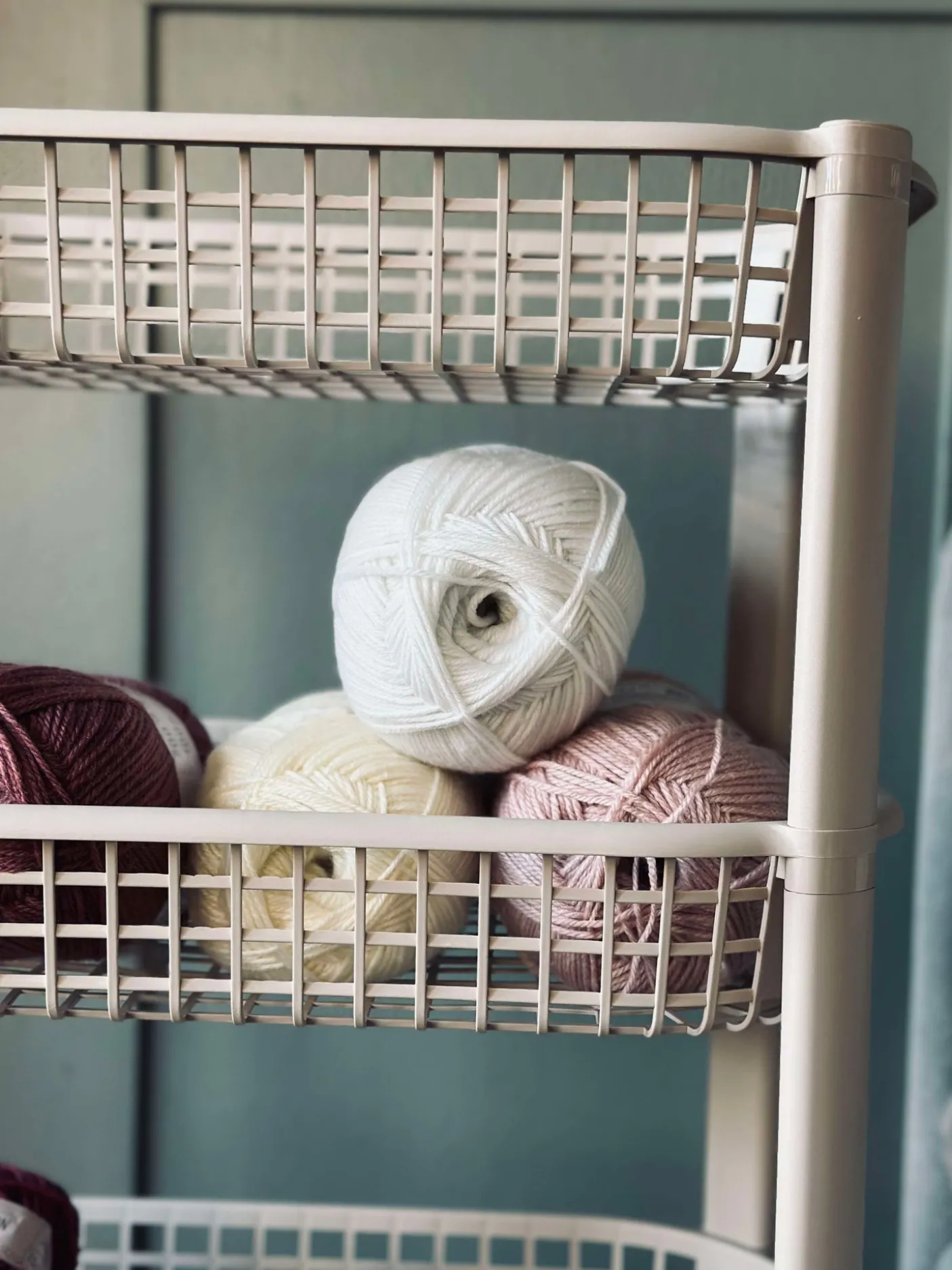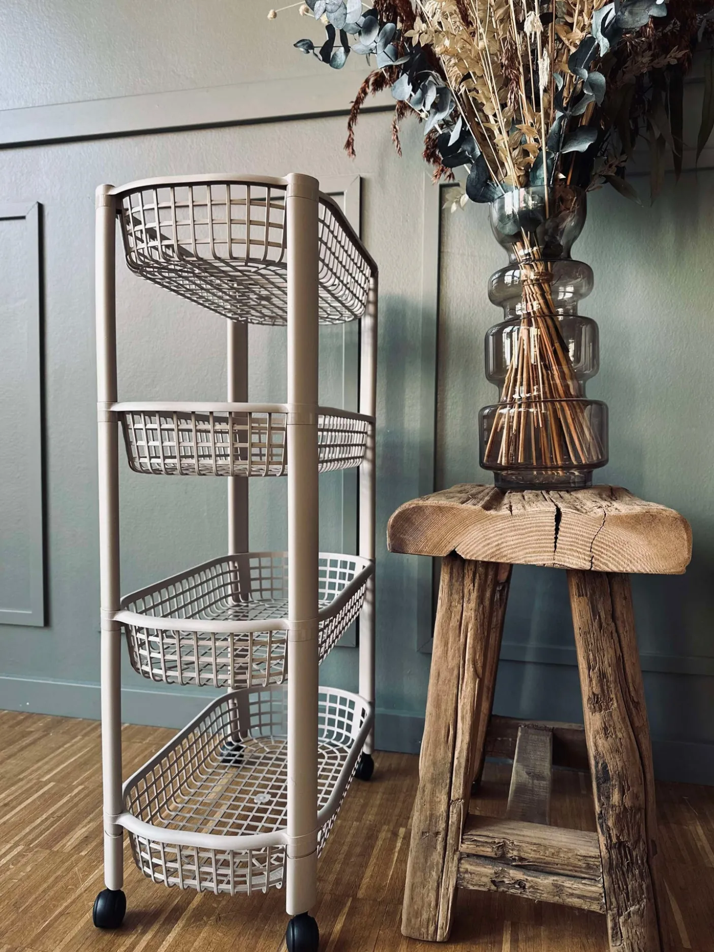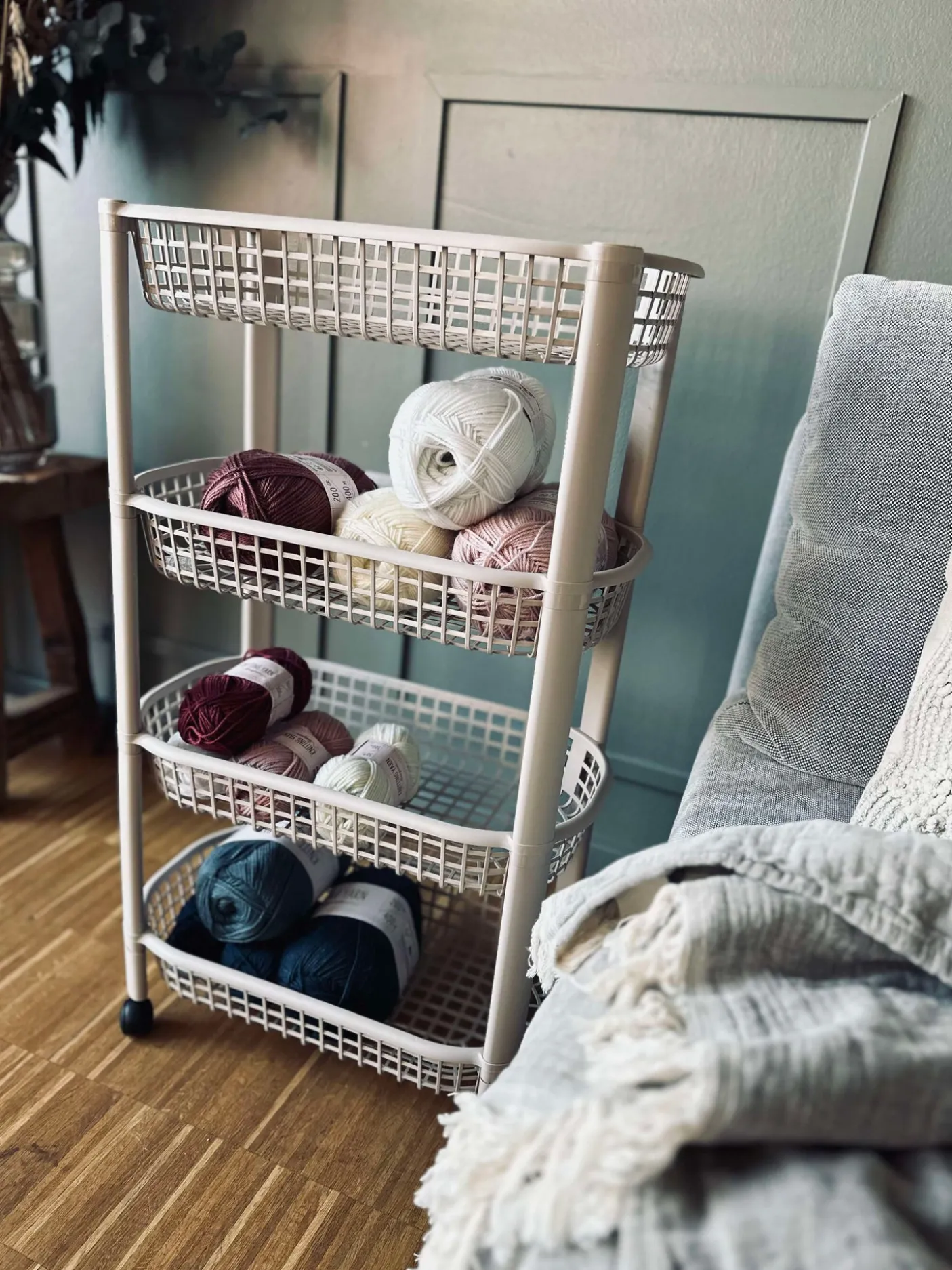 - Beige plast med sorte hjul