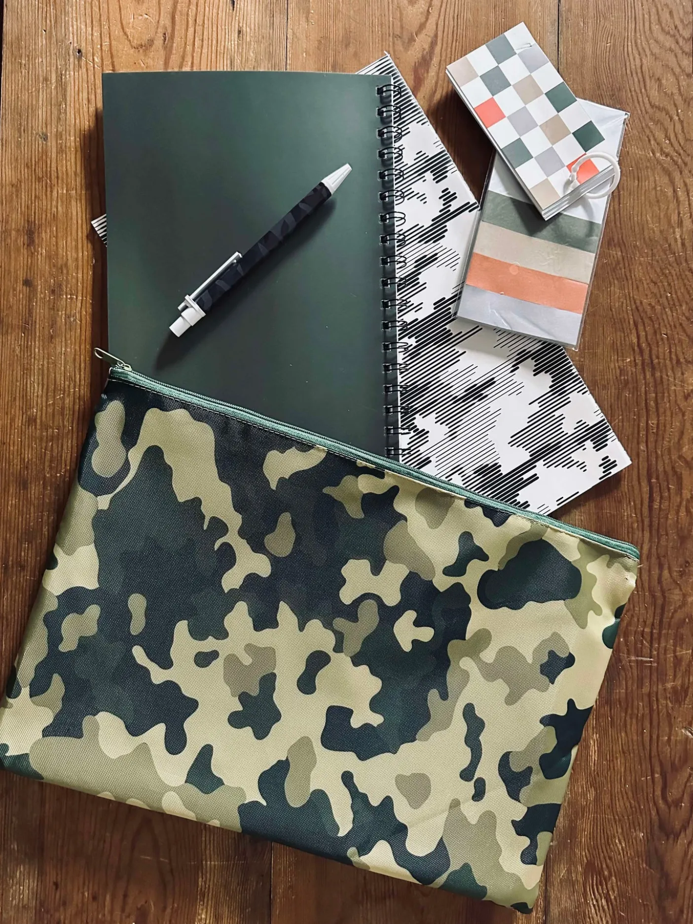 Kuglepen , Blok med linjeret papir, 2 notes papir , 1 taske