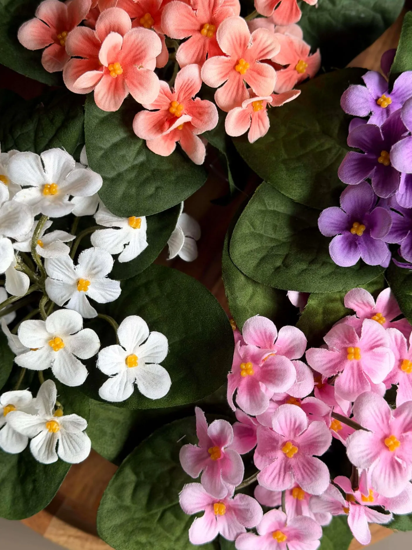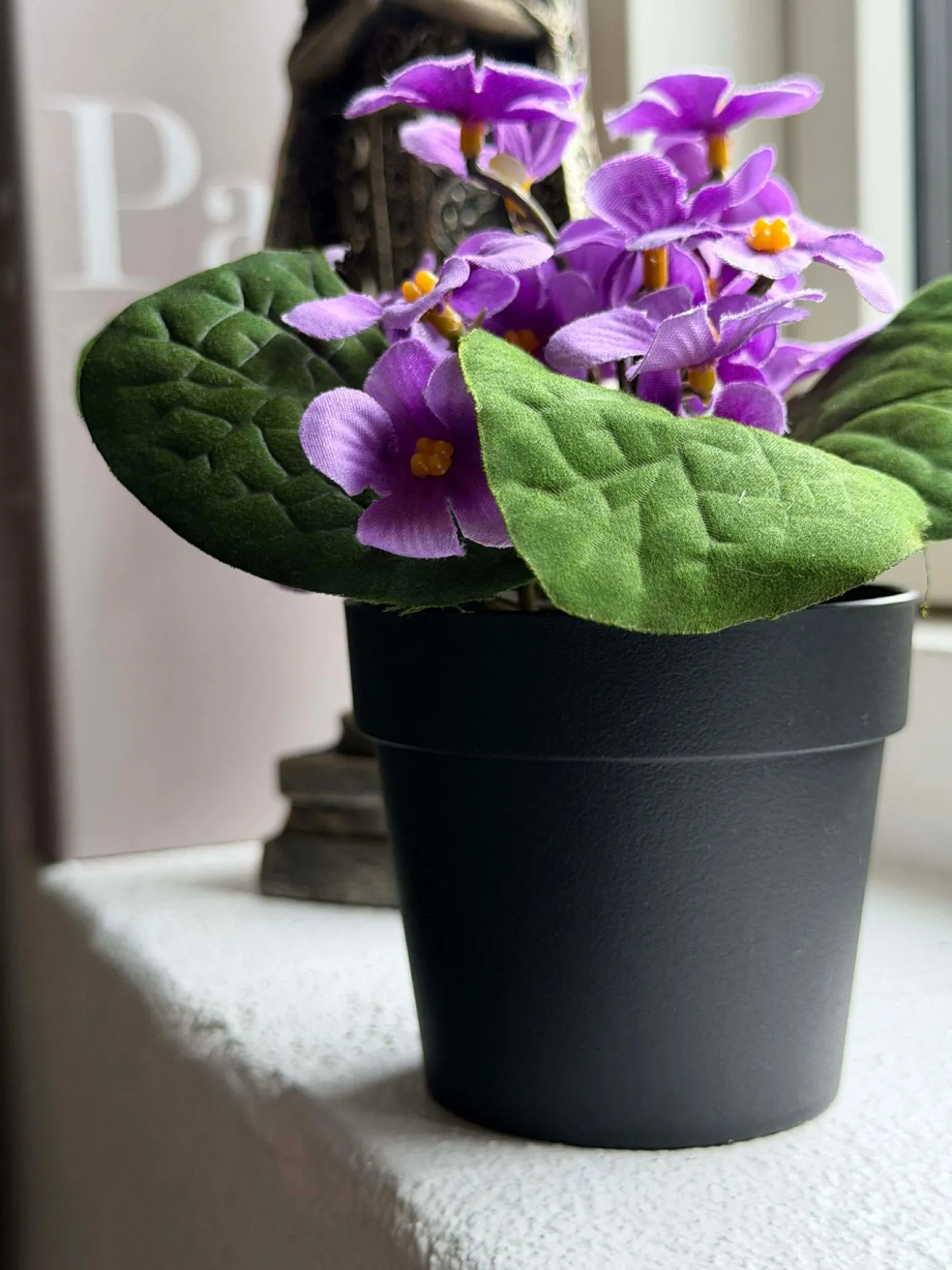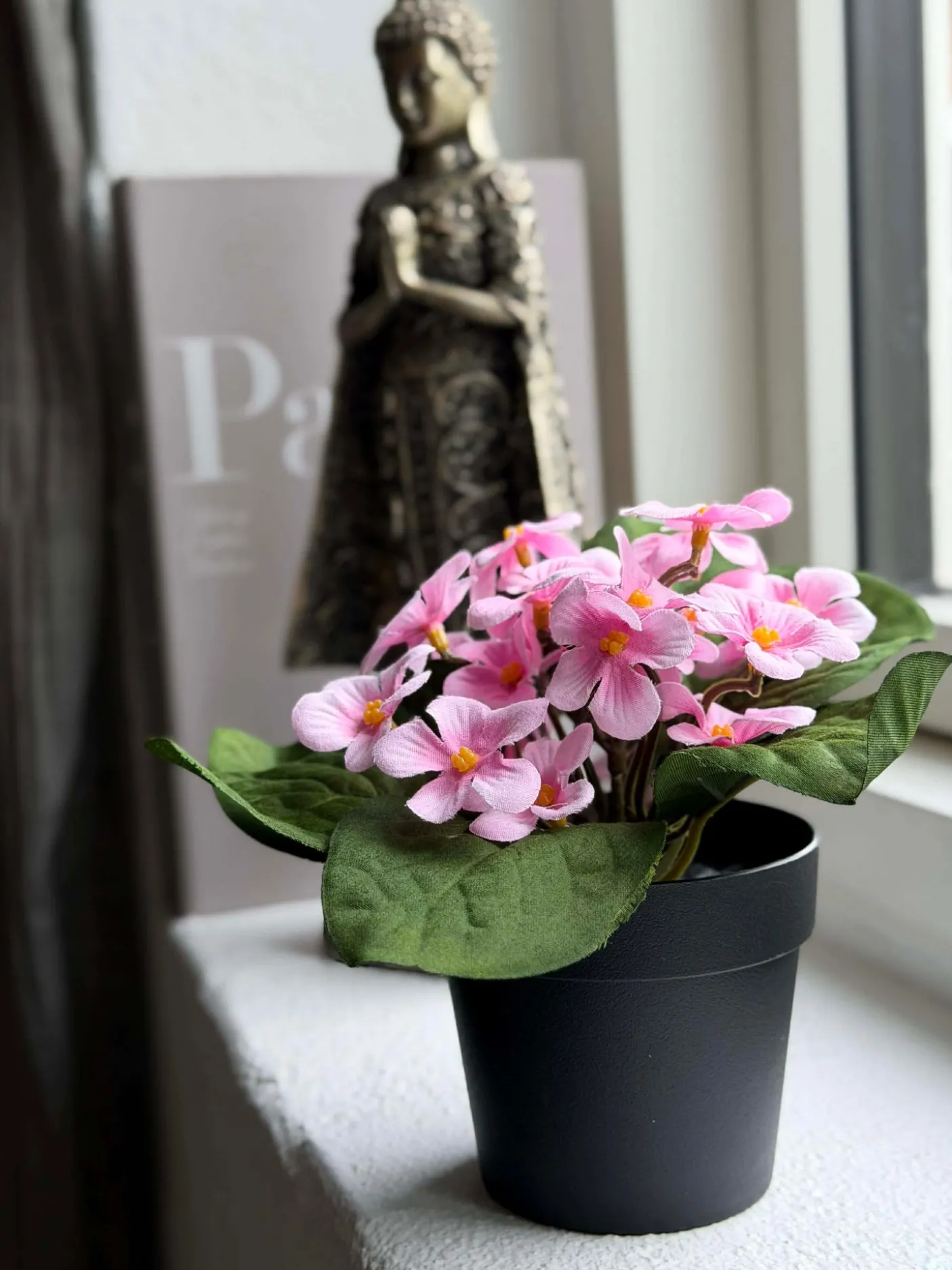 Saintpaulia i potte er en dekorativ potteplante, der tilfører farve og et naturligt touch til hjemmets indretning. Den fås i flere farver og tilbydes i 4 forskellige varianter, så du kan vælge et udtryk, der passer til din stil. Violet-varianten i potte måler 20 x 15 cm og har et kompakt format, der passer i mindre rum eller som en farverig detalje.