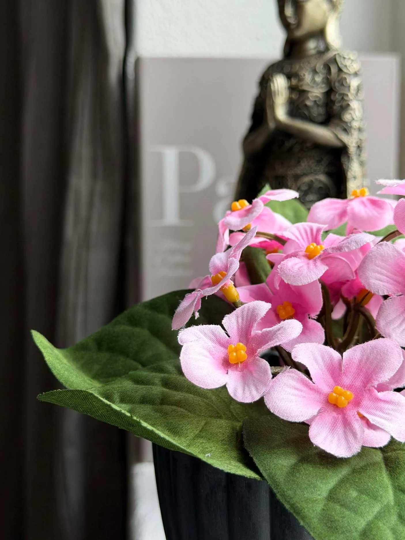 Placer Saintpaulia som en enkel dekorationsdetalje hvor du ønsker farve og stemning. Varianternes forskellige farve- og formkombinationer gør det muligt at integrere planten i både rolige og mere livfulde indretningsstile, hvilket bidrager til en hyggelig atmosfære.