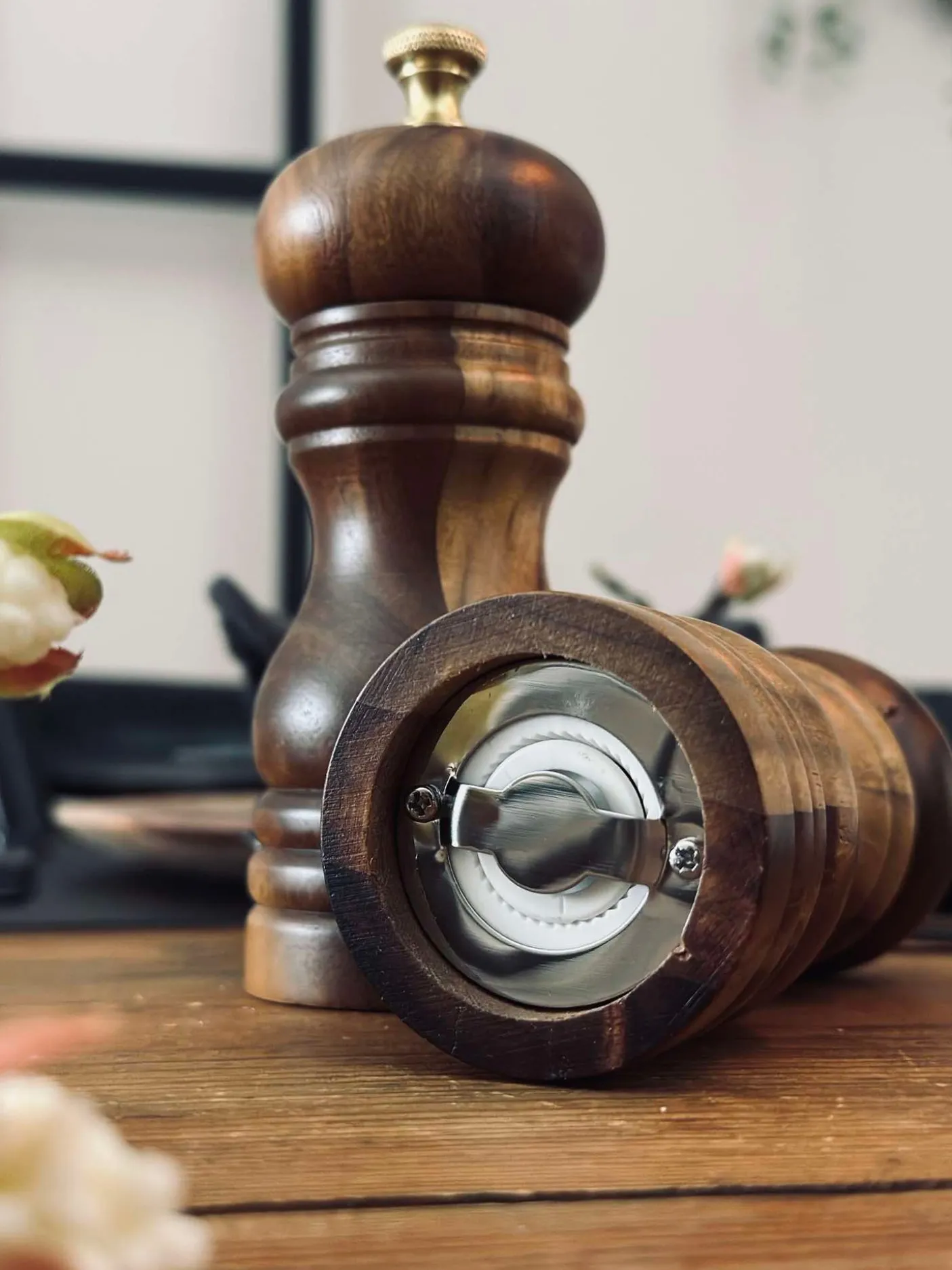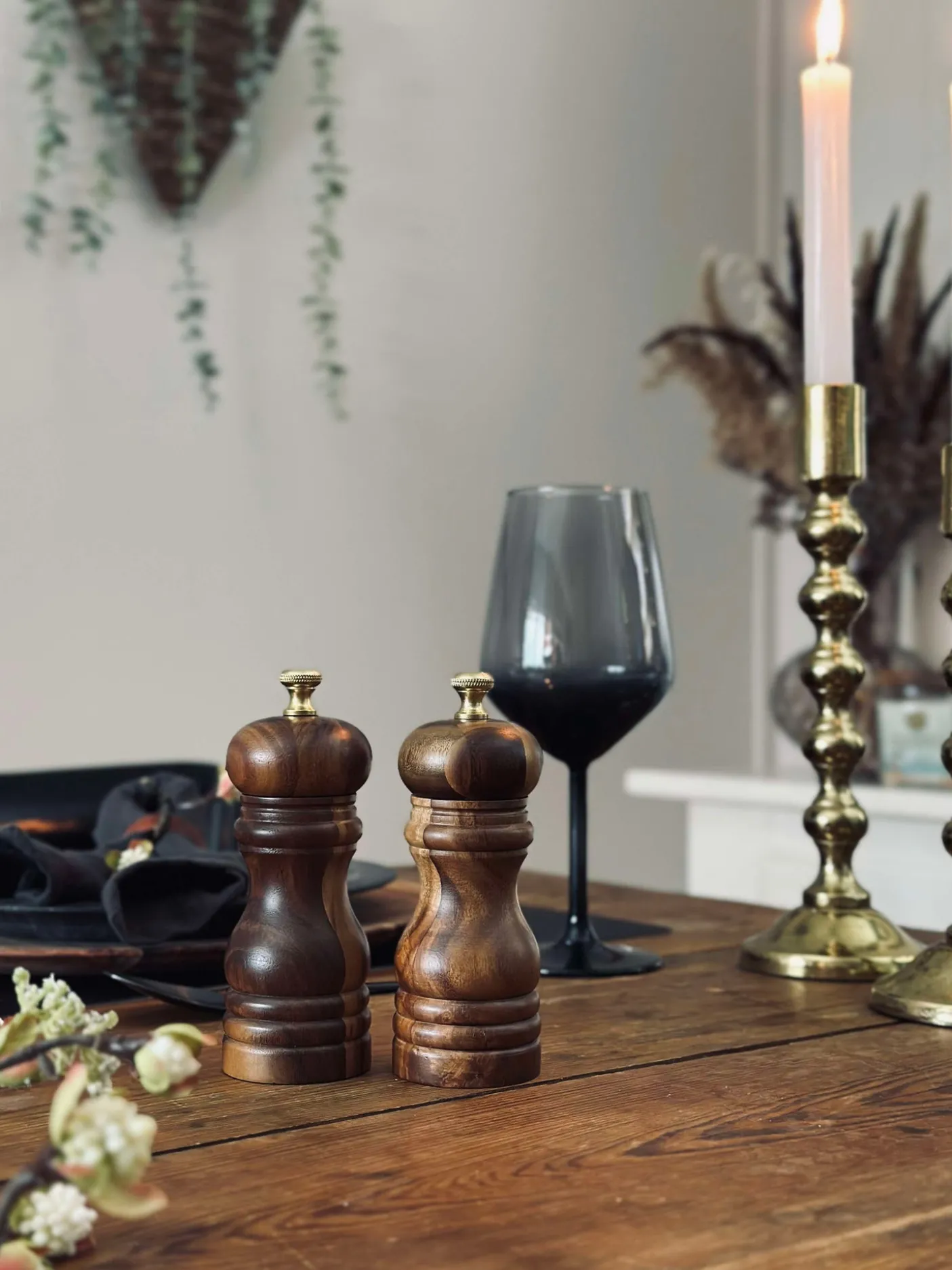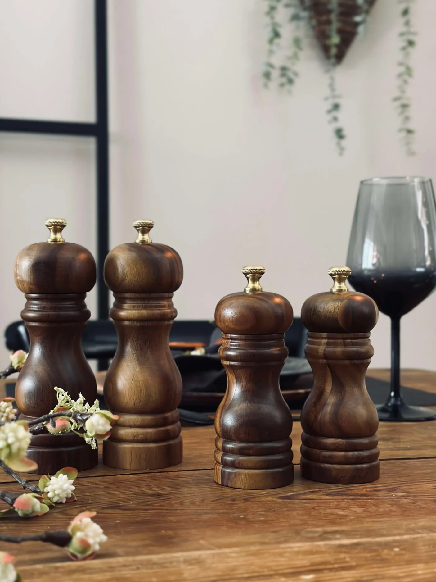 Salt og peber sæt med keramisk kværn i akacietræ.