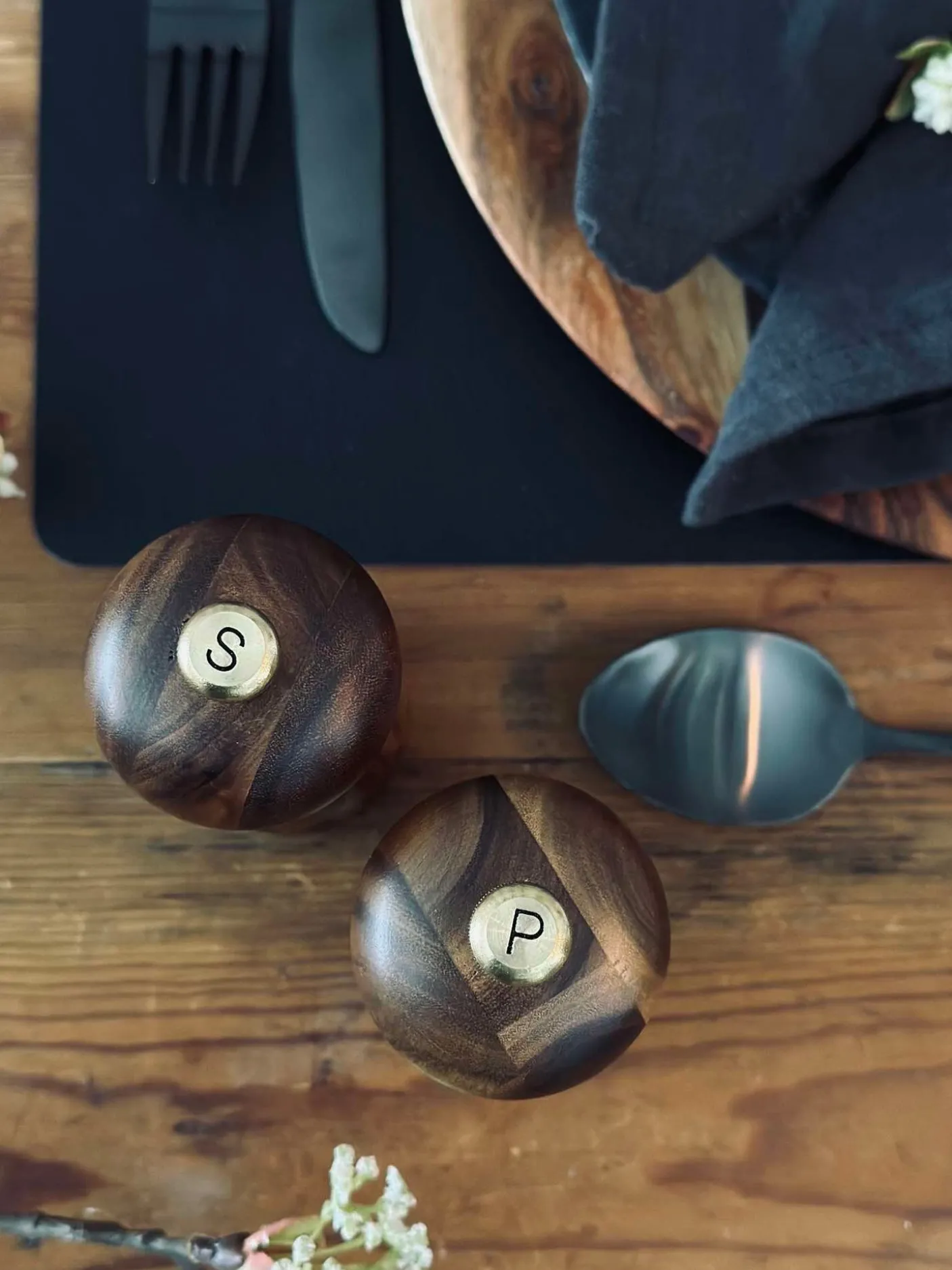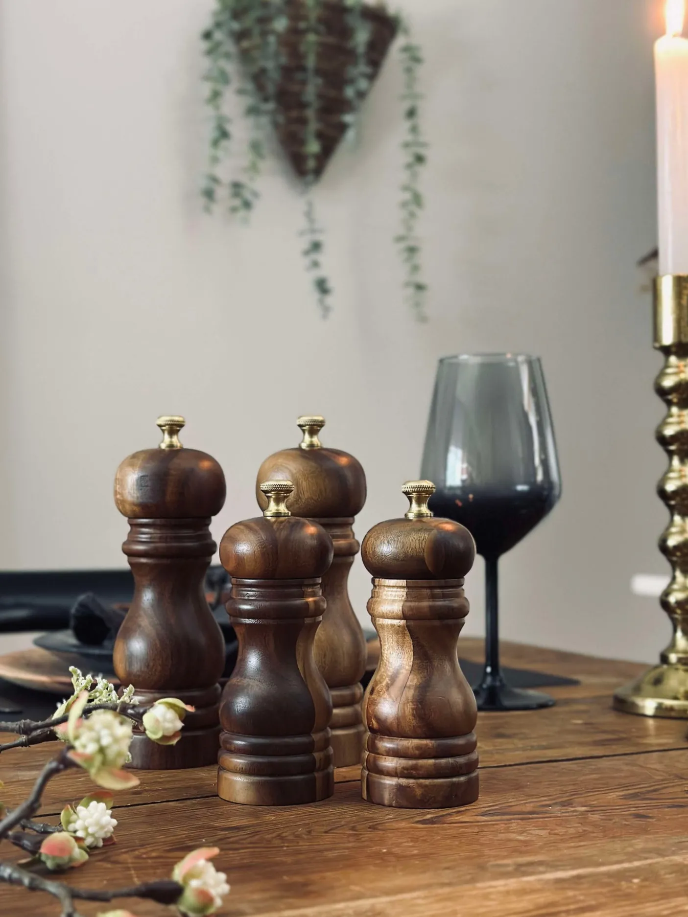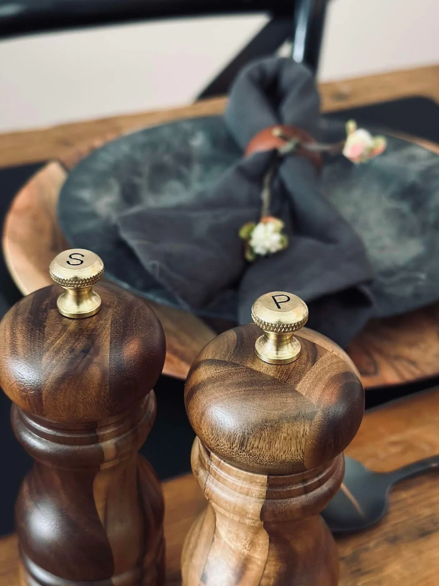 Salt og peber sæt med keramisk kværn i akacietræ.