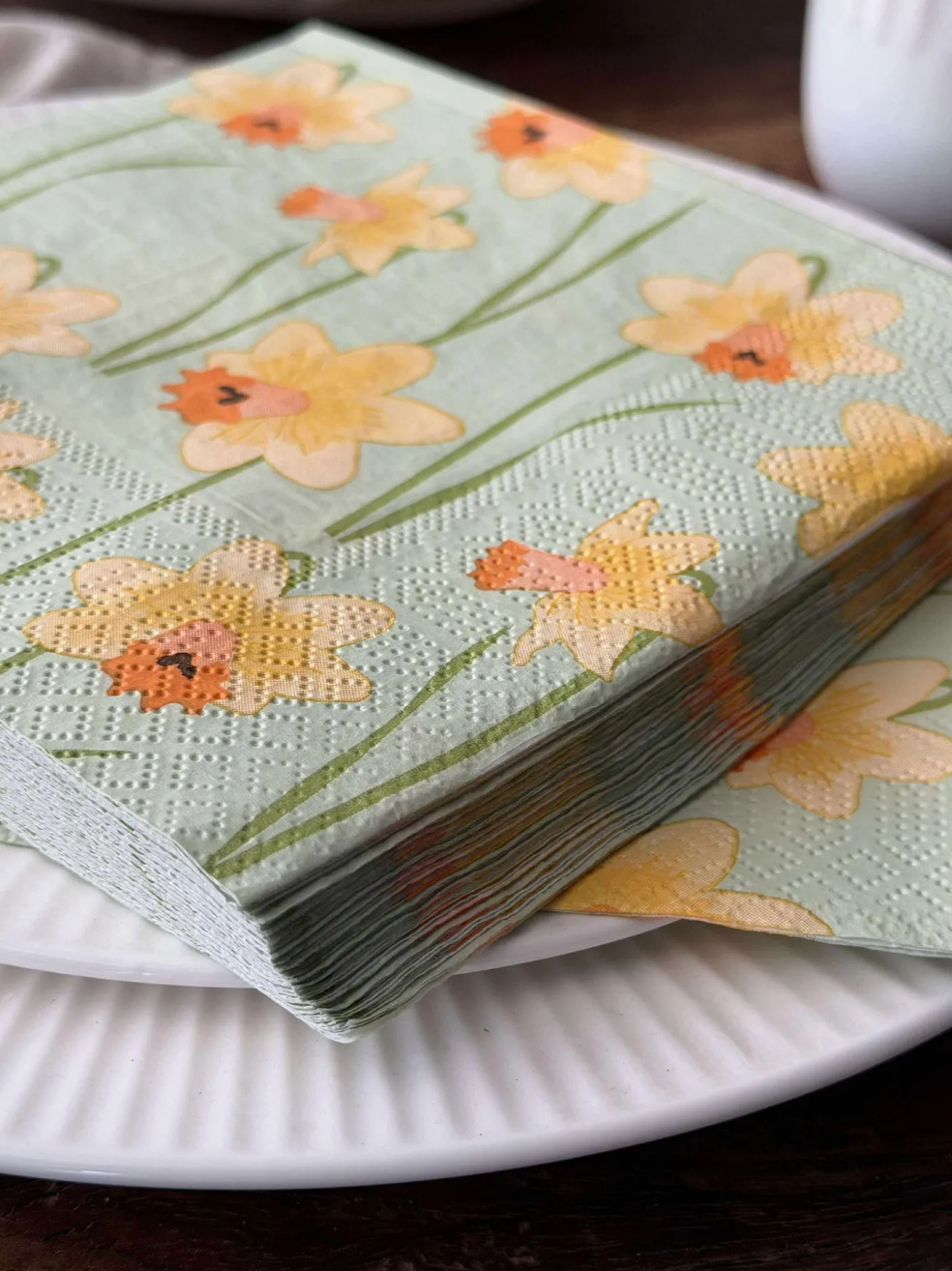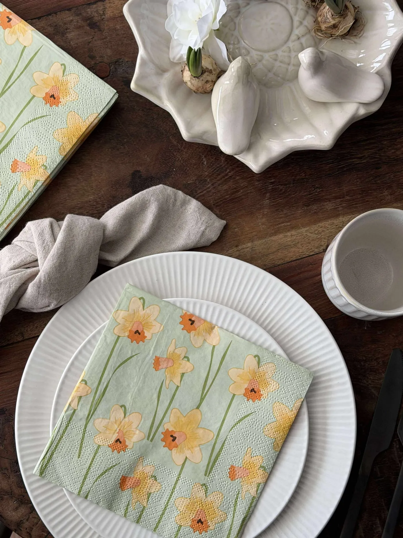 Forestil dig, hvordan dine gæster vil nyde et smukt dækket bord med disse miljøvenlige påskelilje-servietter. De tilføjer ikke kun elegance til enhver højtid, men viser også dit engagement i bæredygtighed. Gør dine festlige sammenkomster mindeværdige med denne perfekte kombination af stil og ansvarlighed.