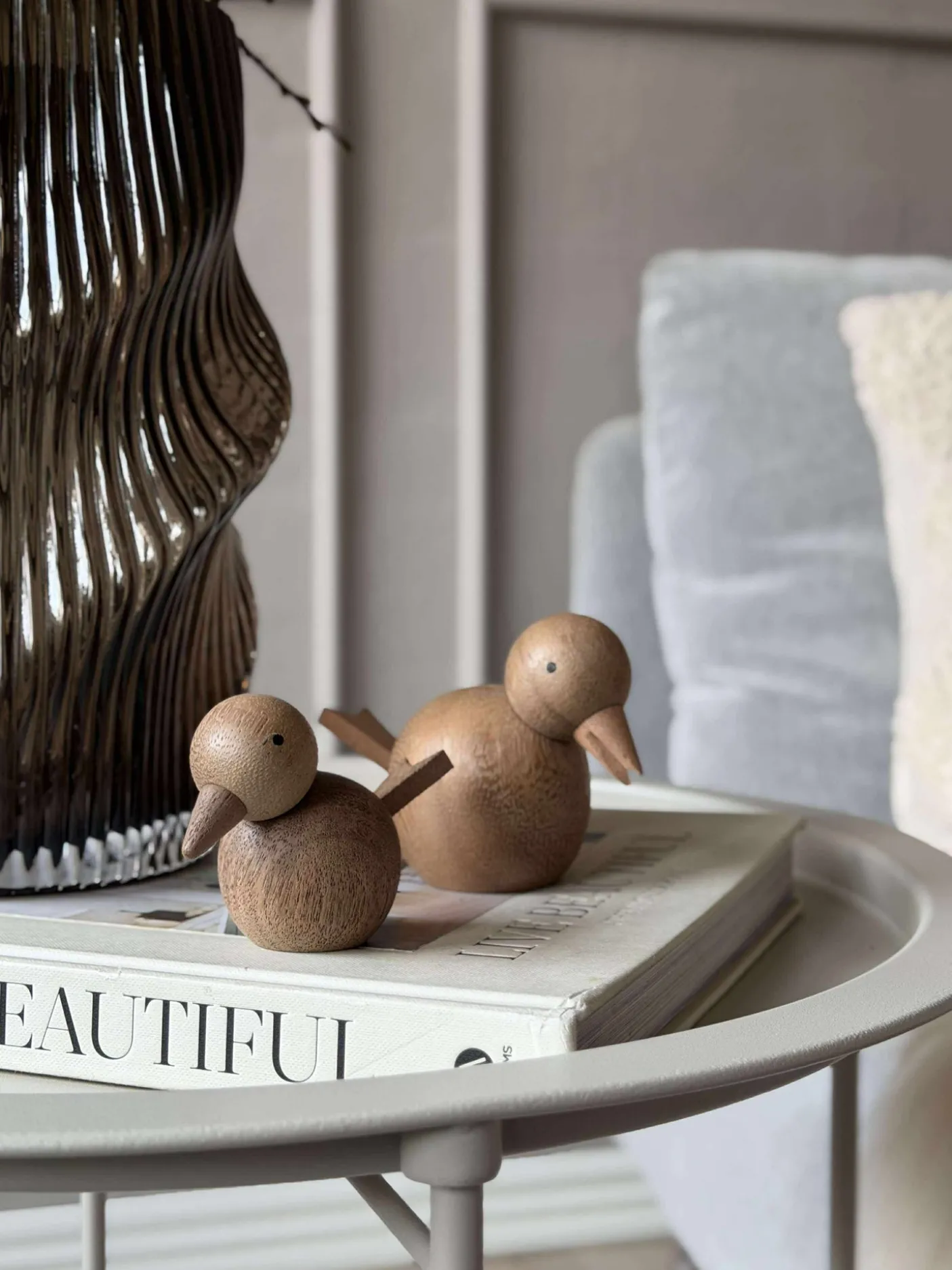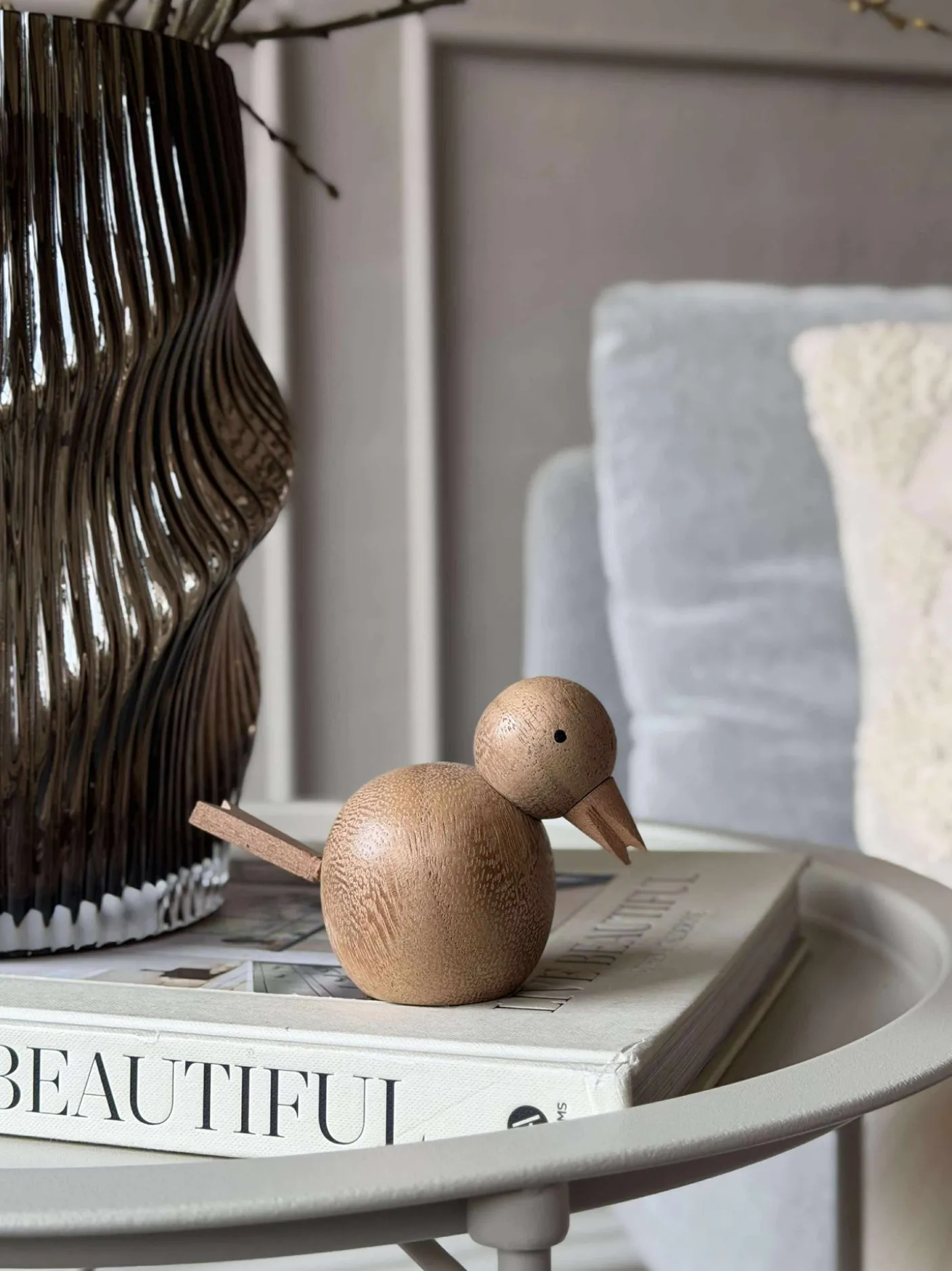 Forestil dig Siddende Fugl – Amber Brun Stor på din bogreol eller vindueskarm, hvor den skaber en varm og indbydende atmosfære. Lad dens naturlige elegance blive en del af dit hjem, og se, hvordan den stille understøtter din stil og tilføjer en særlig dimension til din indretning.