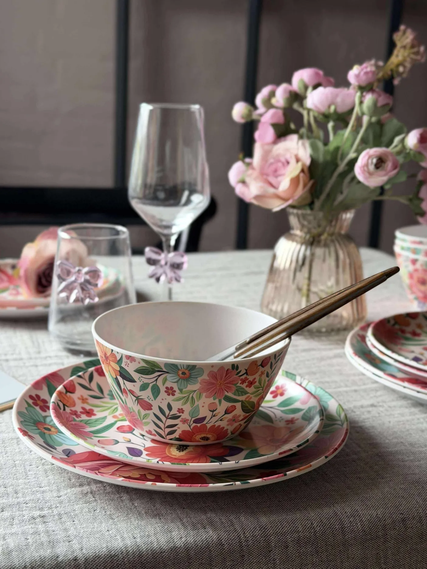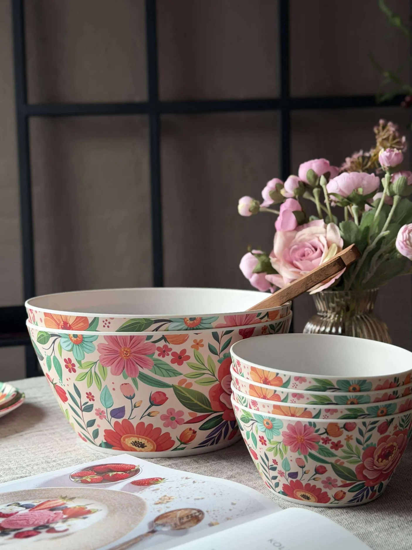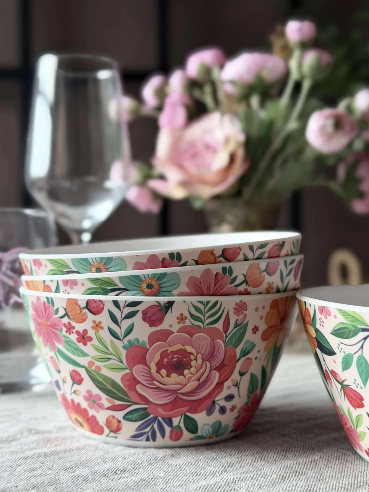 Skål i blomstret melamin.