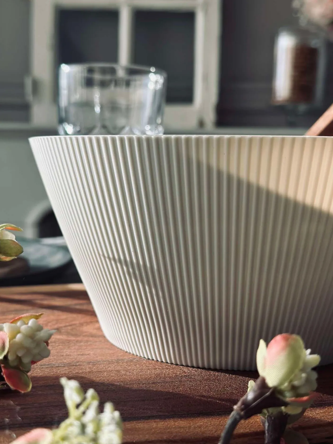 Skål i beige plast.